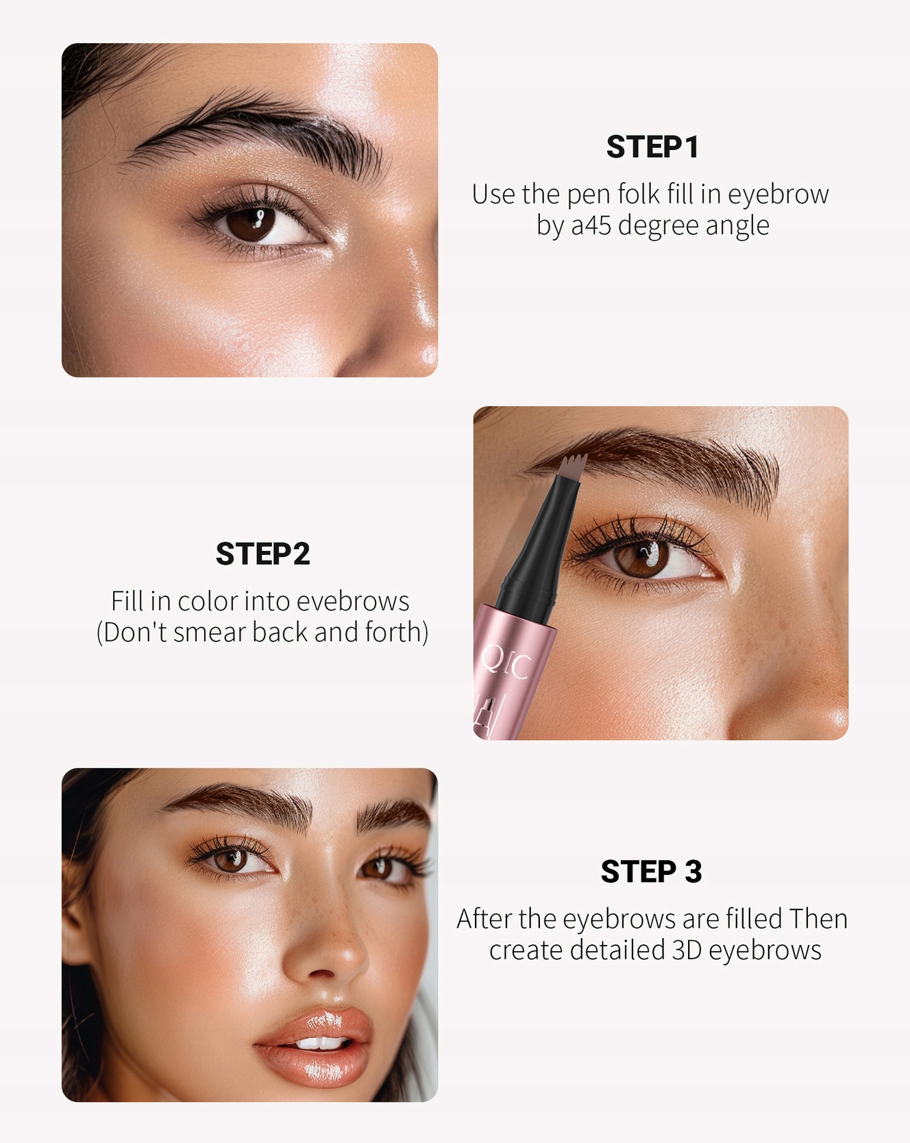 【МІКРОШРИФКИ, ЯКІ ВОЛОССЯ】: ця ручка має 4 тонкі та точні кінчики вилки, які імітують природний вигляд справжнього волосся, тож ви можете створювати брови, які виглядають неймовірно реалістично та чітко. З кожним нанесенням ви можете досягти гладкості та природності, ніби кожне волосся було укладено окремо.