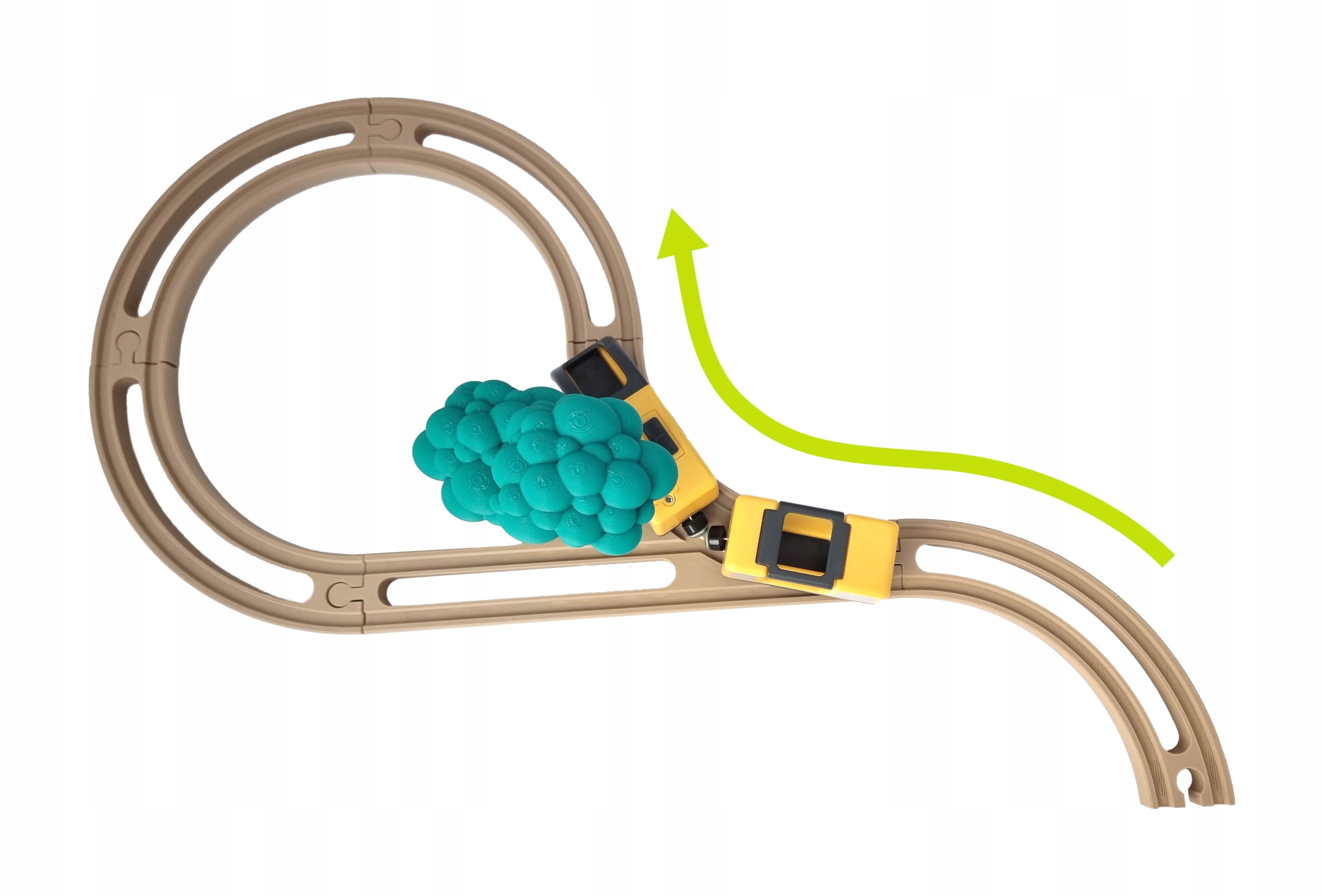 Петля — це розумний елемент доріжки, прихований урок фізики. Замість класичного стрілочного переводу потяг сам вирішує, куди він прямуватиме, керуючись імпульсом і відцентровою силою.