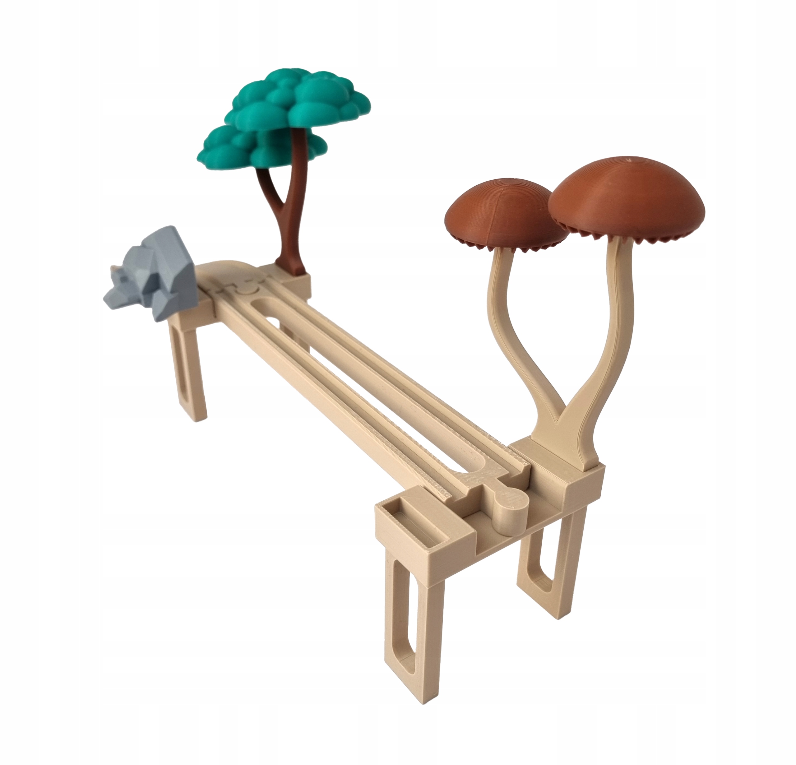 - При покупці понад 100 злотих ми додаємо маленький гриб і великий камінь до набору. або системний міст із з’єднувачем – елементи, які дозволяють створювати нові конфігурації доріжок і відкривати нові способи гри.