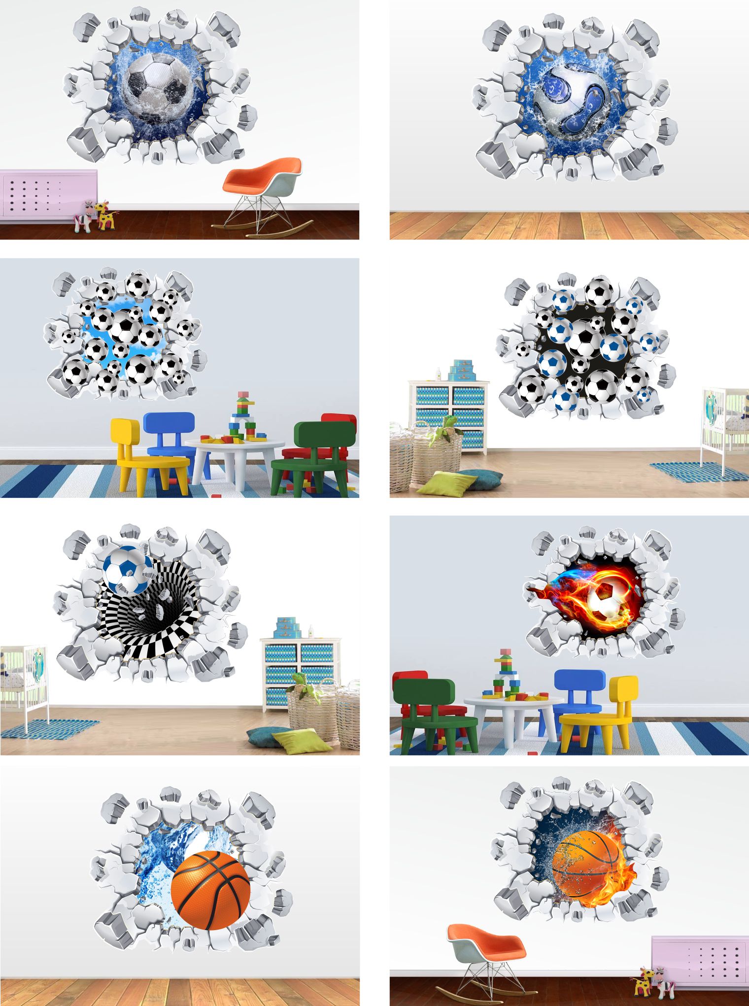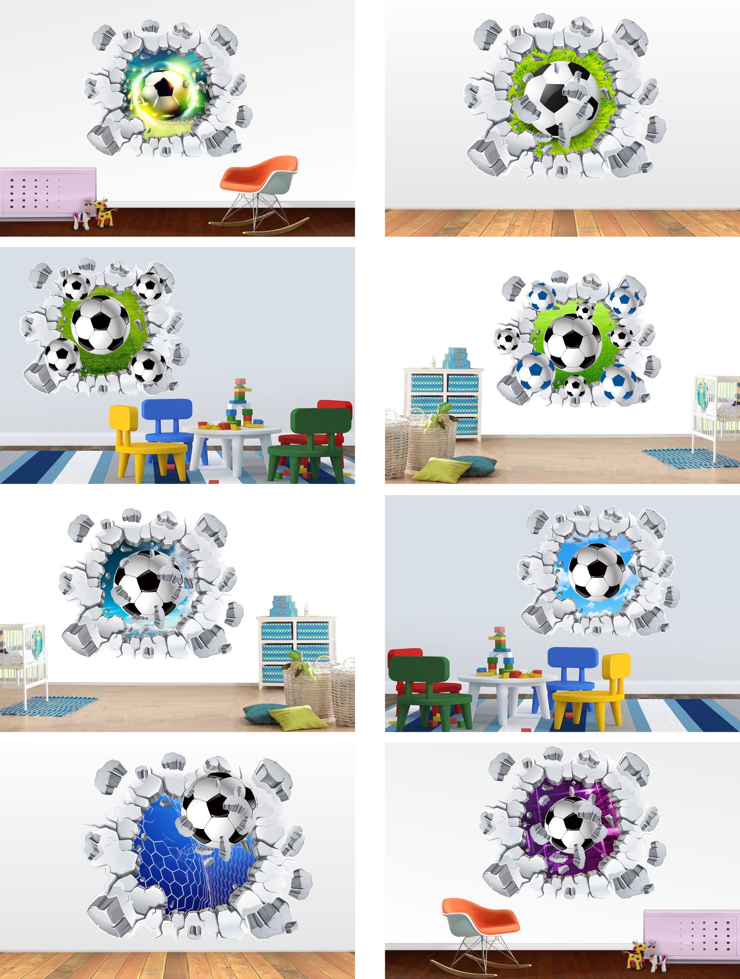 3D наклейки на стіну Футбольні 3D М'ЯЧІ 120см
