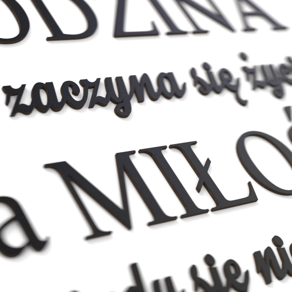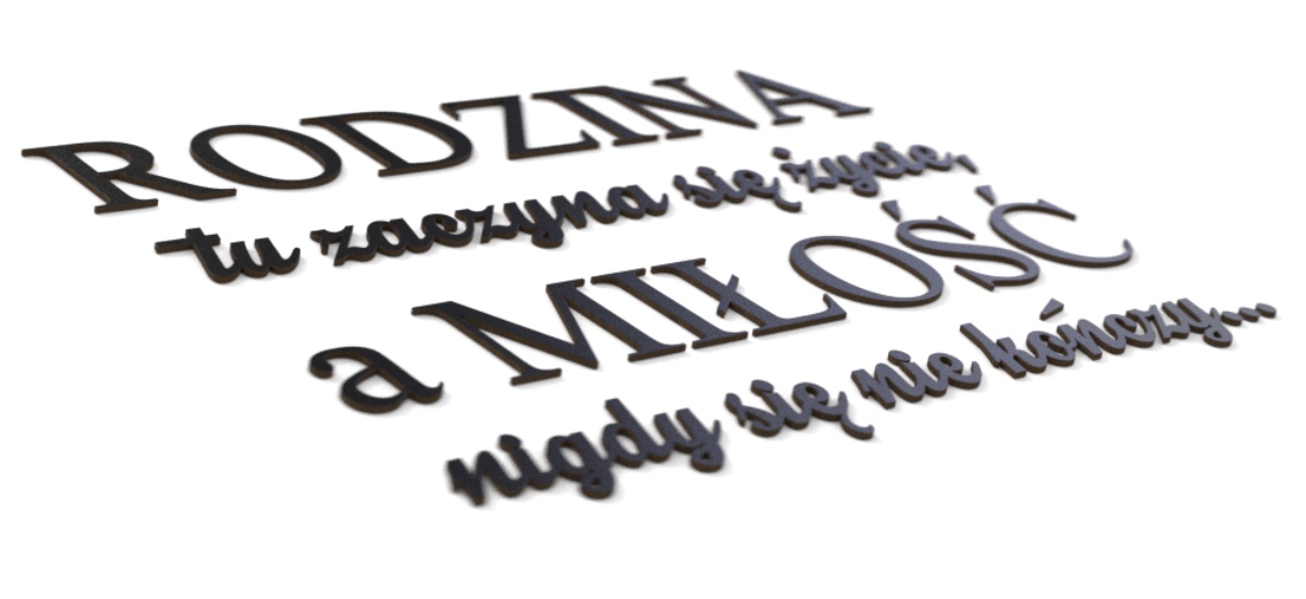 3D написи та декорації виготовляються на замовлення в нашій студії в Ястшембі-Здруй. На наших аукціонах Allegro ми також пропонуємо послуги лазерного різання (Текст на замовлення). Вирізаємо такі матеріали, як акрилове дзеркало, кольорове глянсове оргскло, фанеру товщиною до 12 мм, дерев'яні дошки та ін.