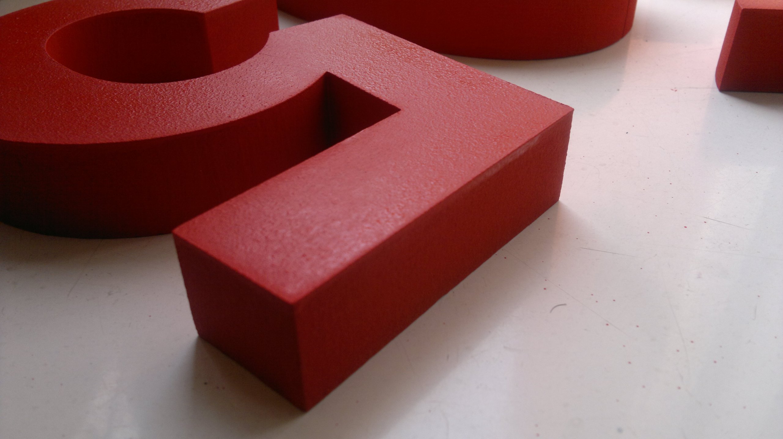 Розміри: перша літера (велика) становить приблизно 15 см, розмір інші літери залежать від пропорцій, товщина всіх літер 2 см.