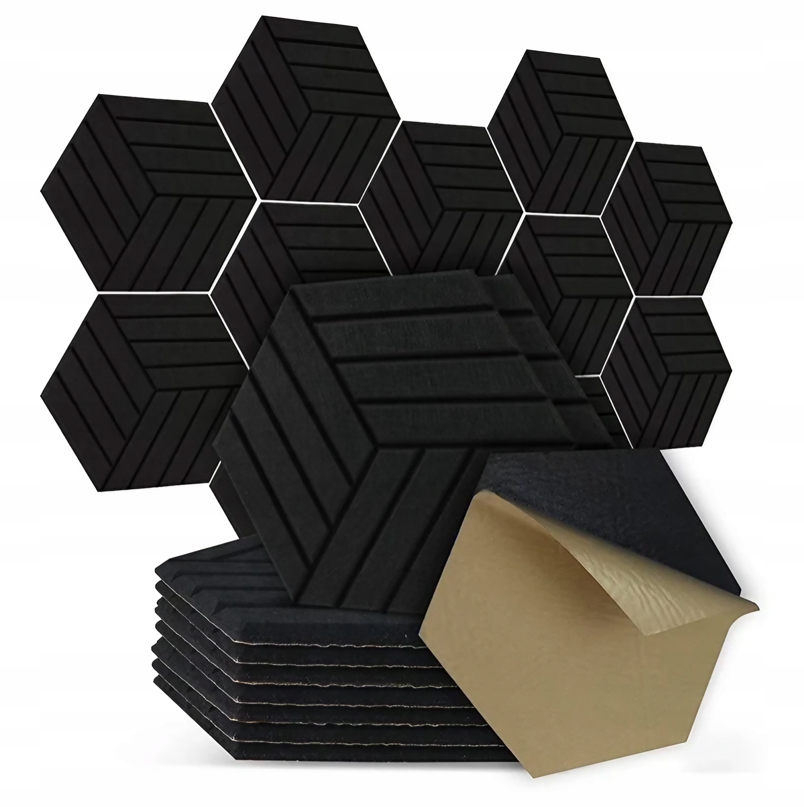 ❤panel Self -Adghesive Wall 3D Filec Hexagon Bright Black 08