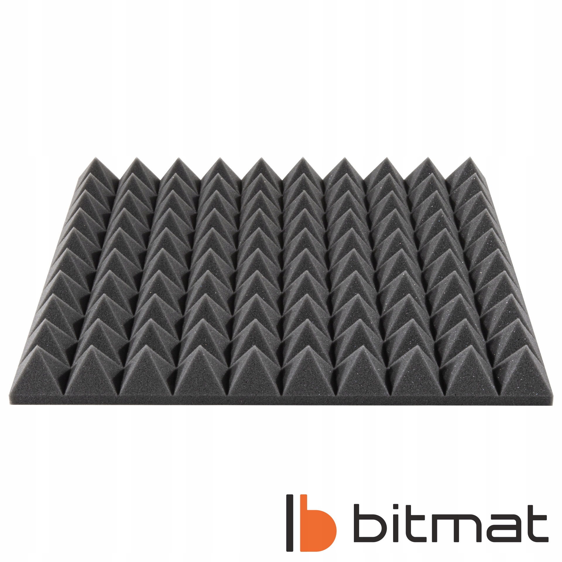Акустична пірамідна піна Bitmat, яка також називається акустичною панеллю, виготовлена зі спіненого поліуретану, а її структура являє собою відкриті комірки. Використання відповідних конусів ідеально працює в студіях і музичних кімнатах/кабінках для навчання, оскільки покращує розбірливість мови та вокалу. Це оптимальне застосування, яке за відносно низьких витрат дозволяє запобігти реверберації, покращити якість звуку у житлових і робочих кімнатах, створити сучасний дизайн.