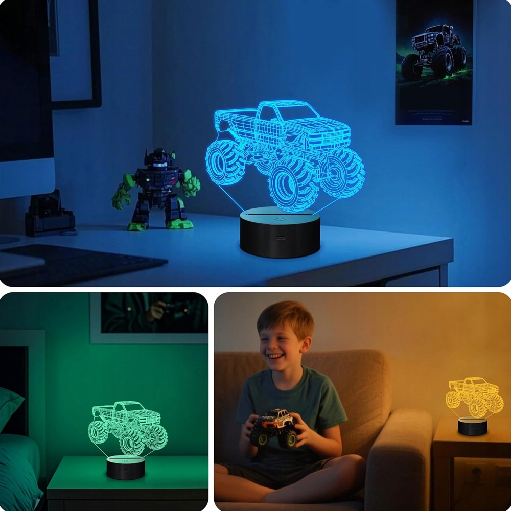 🚛🚛 3D-ефект нічного освітлення: це приємний сюрприз. У темряві ви бачите тривимірне зображення, хоча насправді це двовимірна ілюзія. Зображення вигравірувано лазером на плоских акрилових панелях, створюючи тривимірний ефект і забезпечуючи чудове візуальне враження.