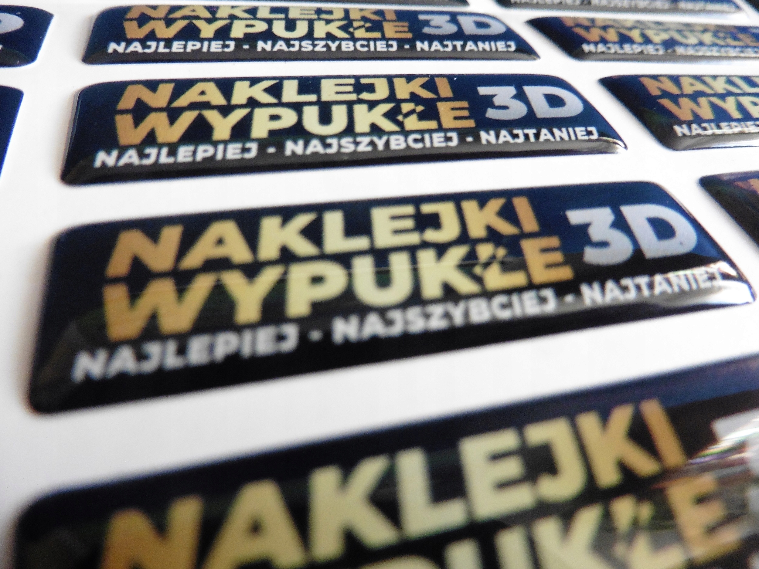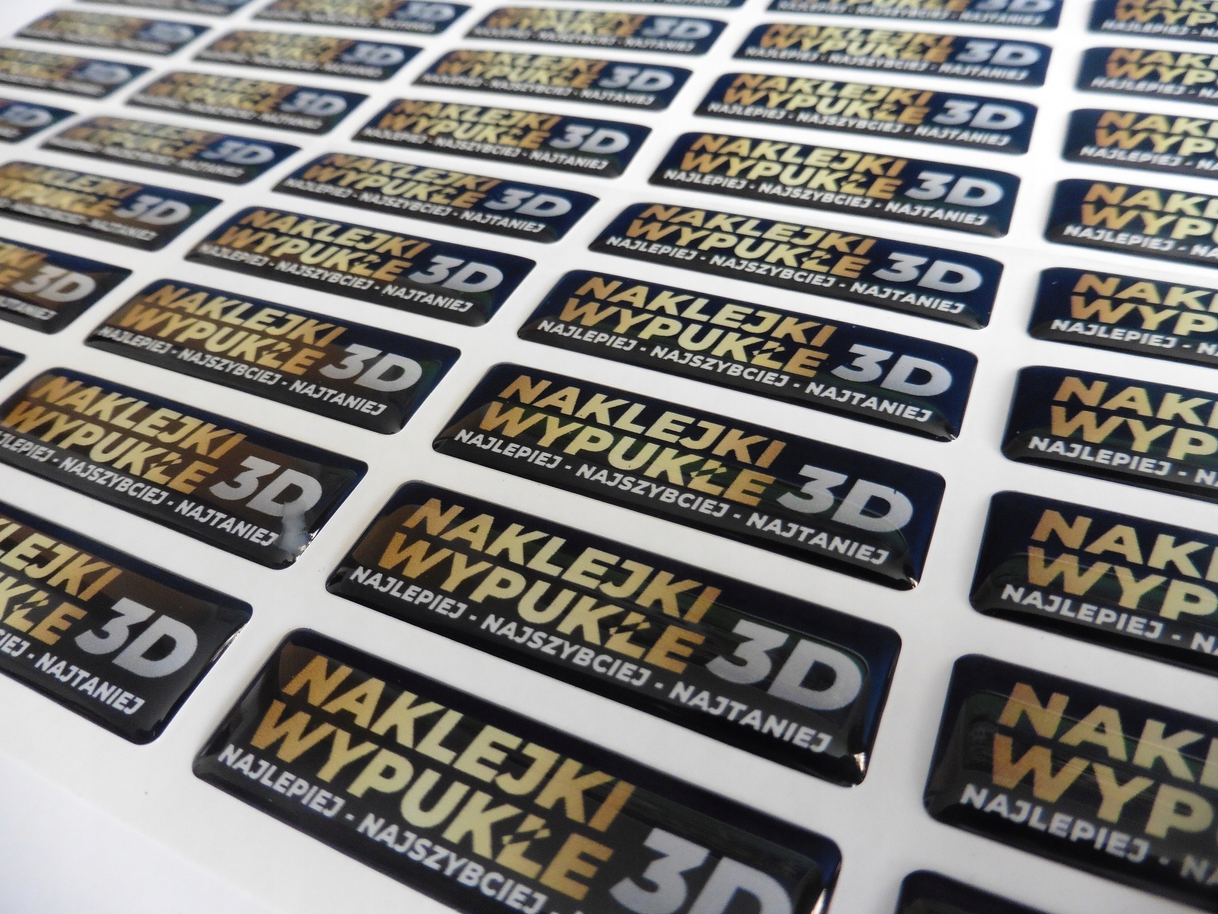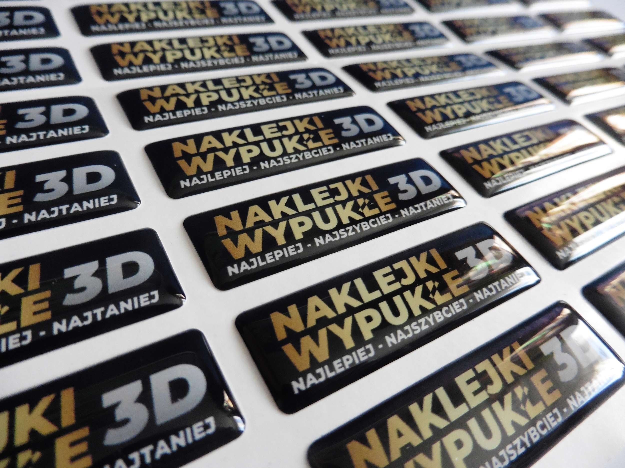 3D-опуклі наклейки є ідеальним способом відображення вашого логотипу. Барвиста вивіска, вбудована в естетичне покриття з поліуретанової смоли, не тільки довговічна, але й чудово виглядає. 3D-наклейки можна використовувати як привабливу обробку на брелоку, їх можна наклеїти на побутову техніку та електроніку, мобільні телефони, автомобільні деталі та багато інших місць, єдиним обмеженням є ваша уява. Завдяки високій міцності покриття, наклейки стійкі до сонячних променів, вологи, високих і низьких температур. Наклейки, які ми виготовляємо, друкуються за технологією eco mild solvent. Наклейки доставляються до вас в листах, можливо зробити перфорацію між наклейками (за додаткову плату), щоб вони легко відділялися один від одного. Більшість наклейок поставляються на аркушах розміром 238 х 350 мм, але розмір аркуша може змінюватися та адаптуватися до кількості та формату замовлення.