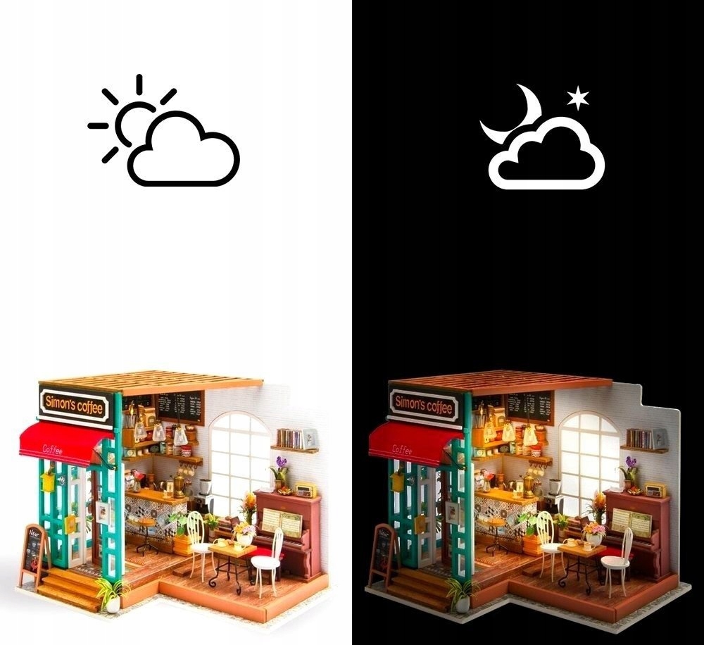 Ідеально відтворена мініатюра кафе. Набір наповнений дрібними деталями, які в поєднанні зі світлодіодним освітленням створюють неповторну атмосферу. Дозвольте собі перенестися в інший світ!