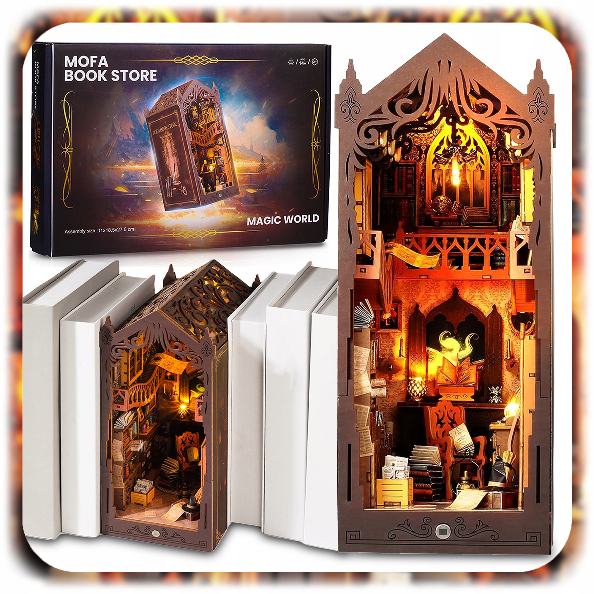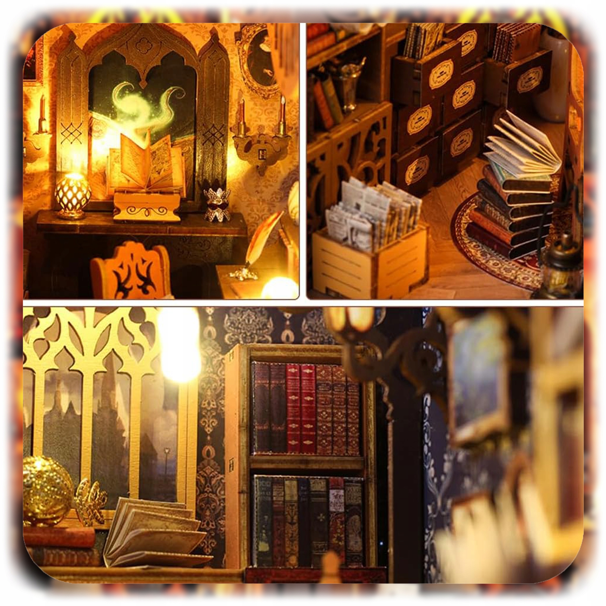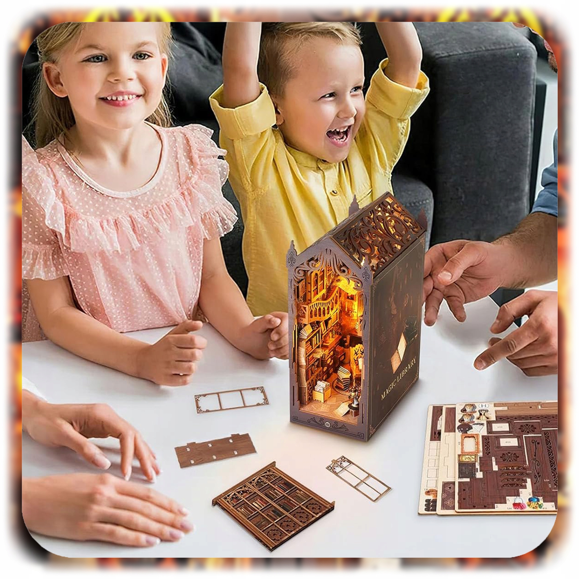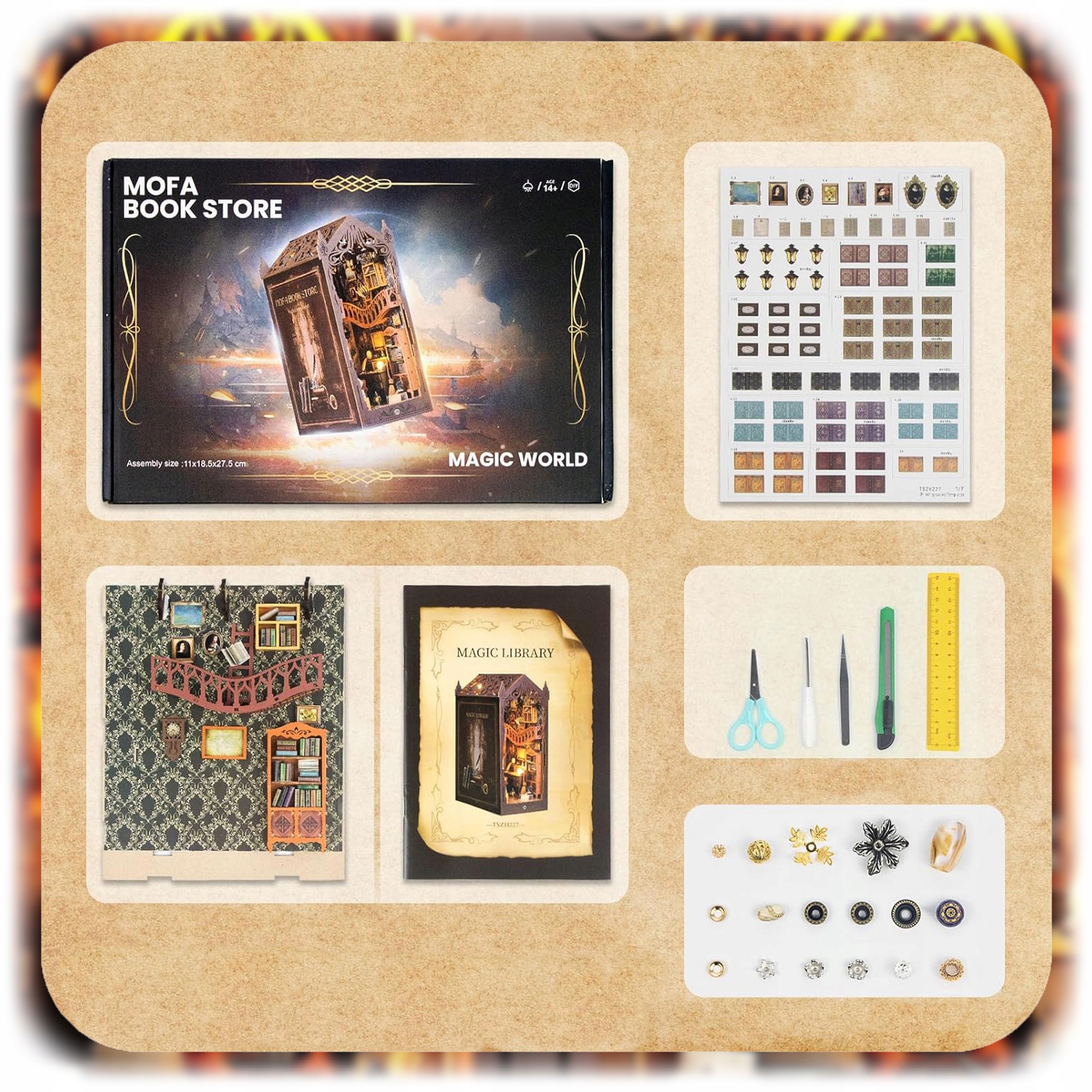 Пориньте у світ літературної магії та точності рукоділля, створивши унікальну 3D-декорацію з дерева. 3D Puzzle - Magic Library — це захоплюючий набір для саморобки, який дозволяє створити красиву модель у формі мініатюрної бібліотеки в фантастичній атмосфері, сповненій таємничого закутки та тепле світло.