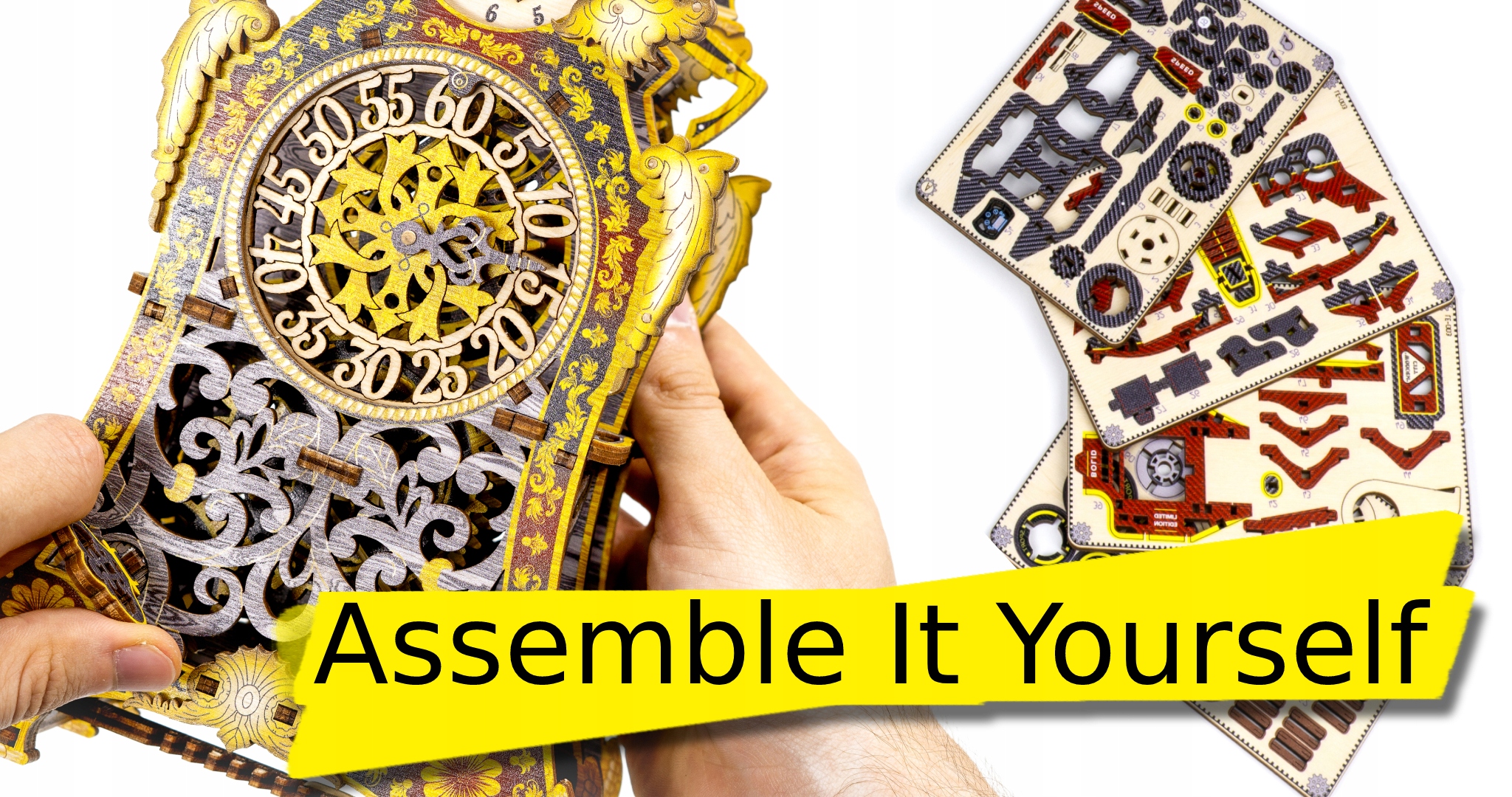 Наш чарівний годинник - це казка, розказана вами. Два обличчя, химерні гравіювання, шестерінки, що обертаються, і постійний ритм маятника. Станьте майстром цієї 3D-головоломки з WOODEN.CITY!