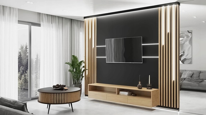 - Компонування доповнено світлодіодними лампами між ламелями доступні на наших аукціонах. Їх розміри спеціально адаптовані до Premium Lamela. Відтепер стіна оздоблена ламелямитакож може стати джерелом світла.