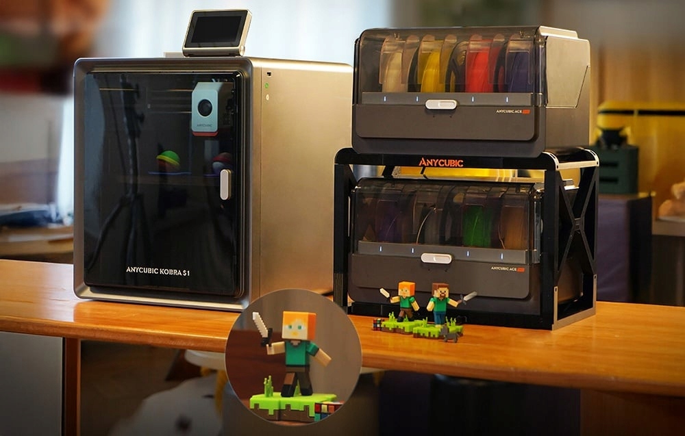 У комбінованій версії AnyCubic Cobra S1 Ви отримуєте можливість друку в багатьох кольорах одночасно завдяки інноваційному 4-камерному контейнері для нитки. Це рішення дозволяє створювати більш складні та візуально привабливі проекти без необхідності вручну змінювати матеріал під час роботи. Автоматичне перемикання між нитками забезпечує ліквідність та точність, що робить цей принтер ідеальним вибором для людей, які хочуть перенести свої проекти на більш високий рівень творчості та естетики.