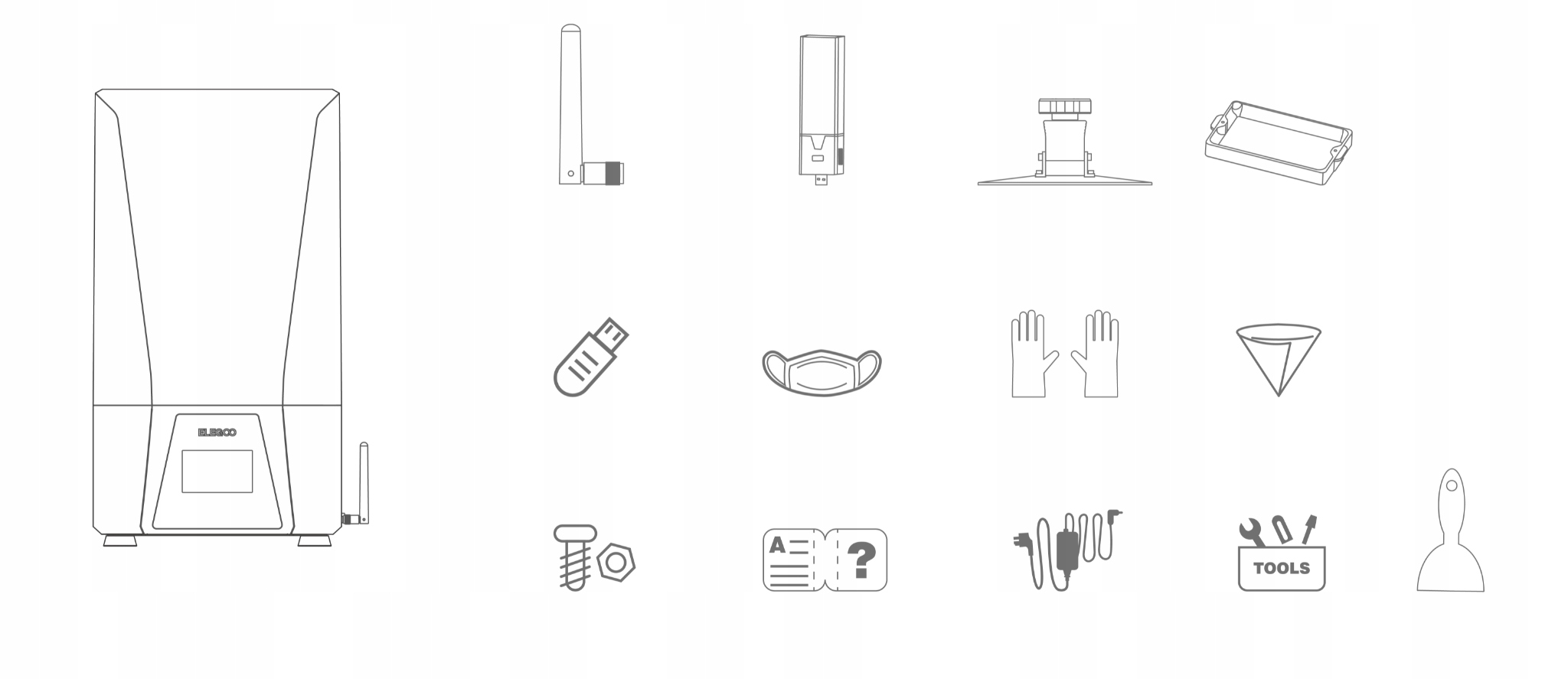 Elegoo Saturn 3 Ultra має очищувач повітря з активованим вугільним фільтром, який поглинає та фільтровує шкідливі та неприємні запахи смолипід час друку. Він суміснийз очищувачем повітря MARS MATE. Джерело світла COB із заломлюючою лінзою, що забезпечує рівномірне освітлення та мінімізує розсіювання світло. Крім USB, Saturn 3 Ultra підтримує передачу даних через WiFi, будучи сумісним з мережами 2.4G і 5G. Файли можна передавати на швидкості 6-10 Мбіт/с як з телефону, так і з комп'ютера. Вісь Zобладнано інтегрованим кульковим гвинтом і подвійною лінійною напрямною, що забезпечує дуже стабільний і плавний рух. Протектор екрана із загартованого скла 9H забезпечує захист РК-дисплея від подряпин, а також пошкоджень, спричинених витоком або проникненням смоли.