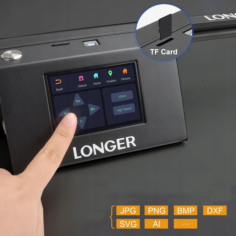 Розумний екран 3,5 дюйма, не потрібно підключати обладнання для лазерного гравірування до комп’ютера, підтримує роботу в автономному режимі.