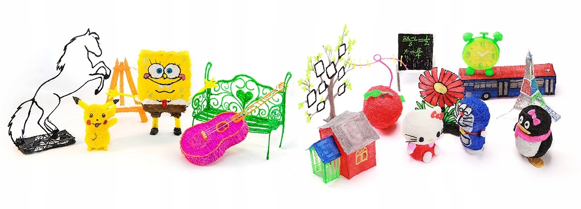 Насадки виготовлені зі спеціального матеріалу, який нагрівається всередині ручки та виходить із сопла у пластиковій формі, а потім застигає на повітрі.