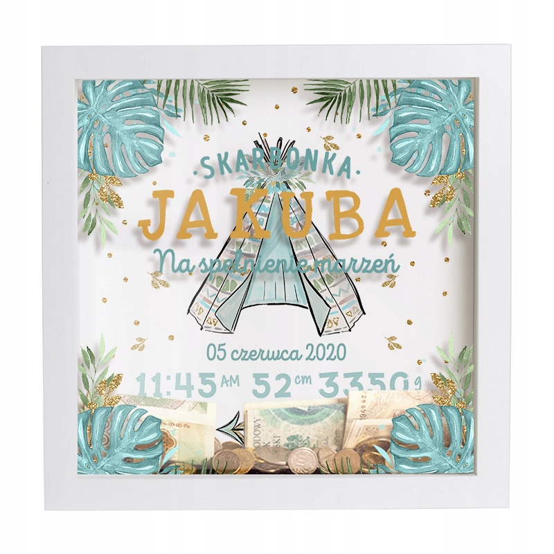 - У верхній частині рами є спеціальний отвір, через який можна покладіть свої заощадження. Рамку можна легко відкрити та повісити на стіну завдяки гачкам, прикріпленим до тильної сторони. креативний подарунок на народження, що це дуже практично для майбутнього. Прикрашена скарбничка - теж дивовижний сувенір з дитинства.