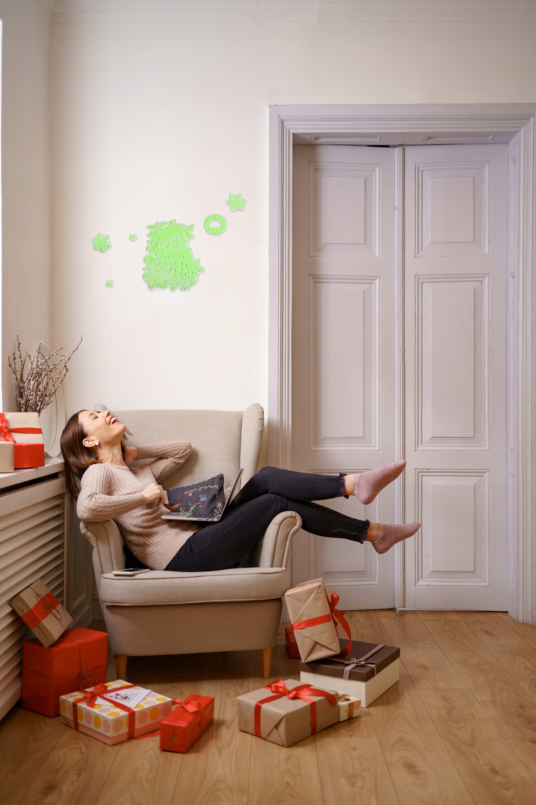 ✨Різдвяні наклейки, що світяться в темряві. Ідеально підходить як прикраса кімнати. Їх можна клеїти на будь-яку поверхню, наприклад скло, меблі, стіну.