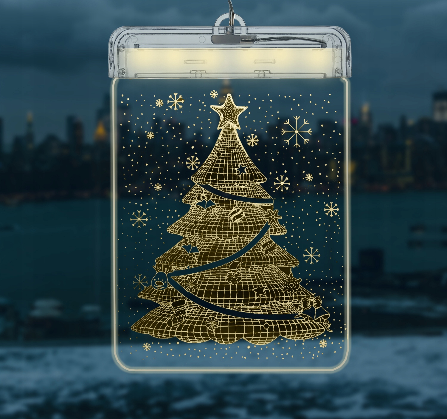 - ДВОСТОРОННИЙ 3D - декорація двостороння, тому повісивши на вікно буде красиво виглядати як зовні, так і всередині. Вітраж виготовлений із міцного пластику з нанесеним лазерним гравіюванням. Скло вікна живиться від батарейок, тому ми не повинні турбуватися про наявність джерела живлення. Світловим декором можна прикрасити практично будь-яку поверхню, наприклад, вікно, навіть у нестандартних місцях - без кабелів і подовжувачів.