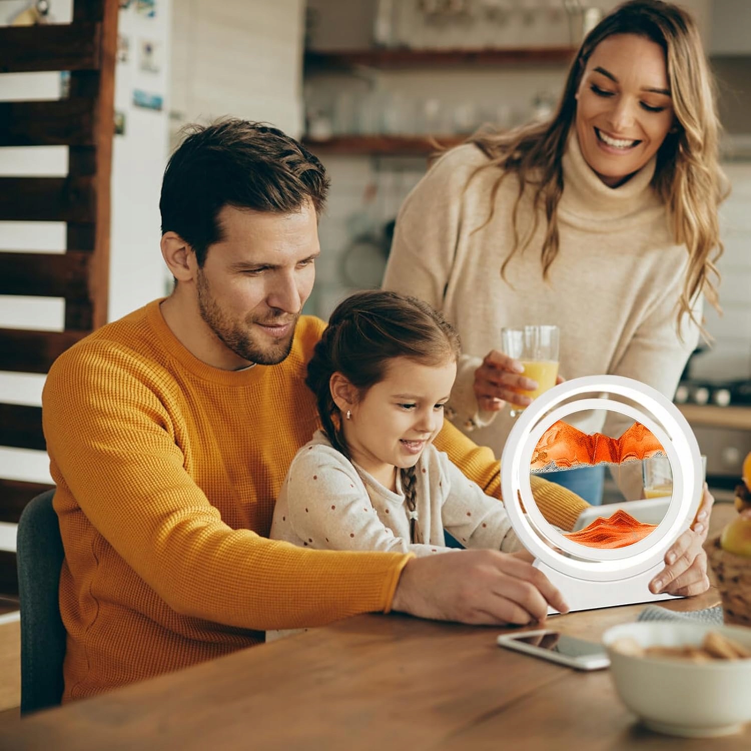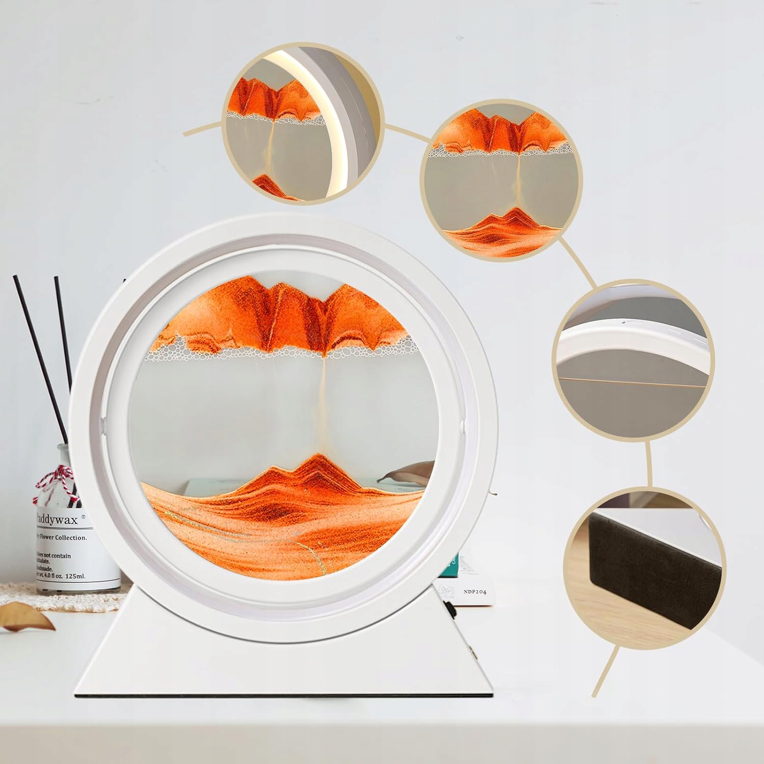 ⏩Пісочний малюнок можна обертати на 360°, щоразу, коли він обертається, пісок починає рухатися, повільно створюючи пустелі, океани та гори.