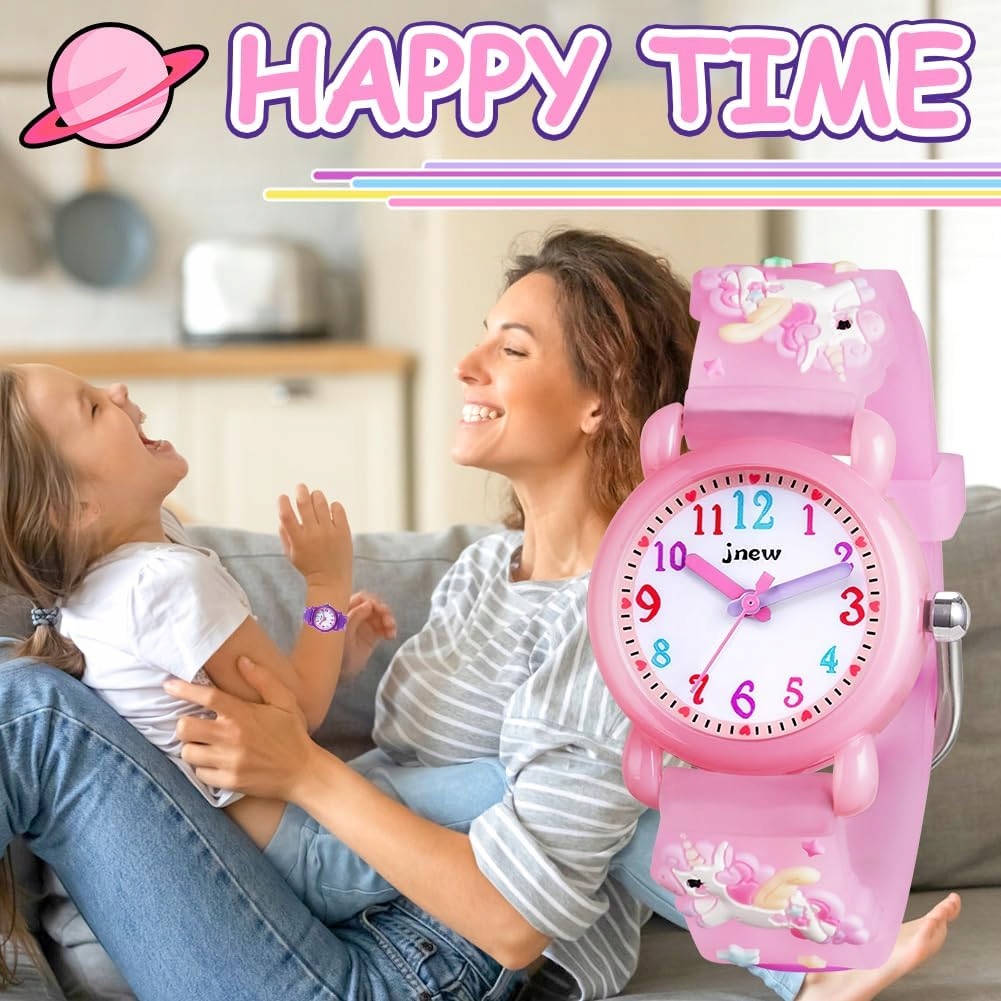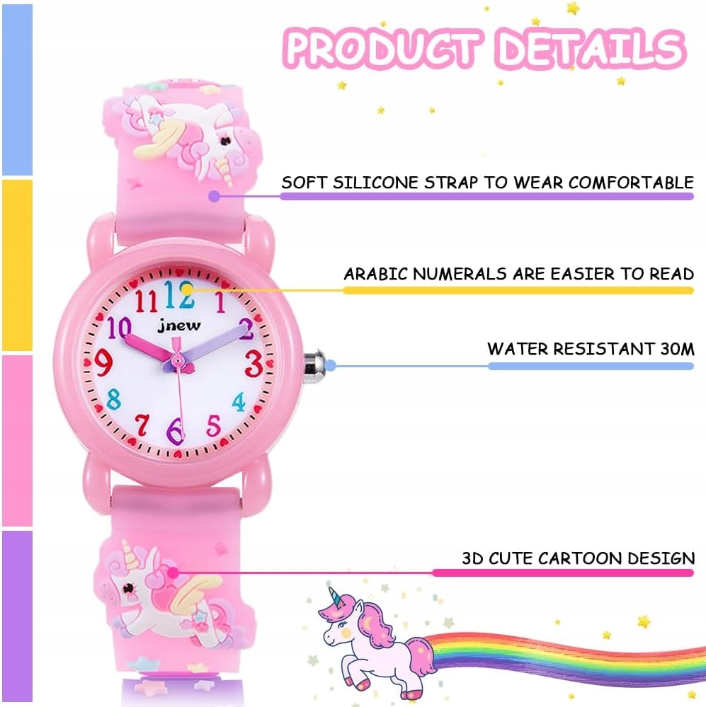 3D ВОДОСТІЙКИЙ ДИТЯЧИЙ ГОДИННИК З РОЖЕВИМ РЕМІНЦЕМ З МОТИВОМ ЄДИНОРОГА