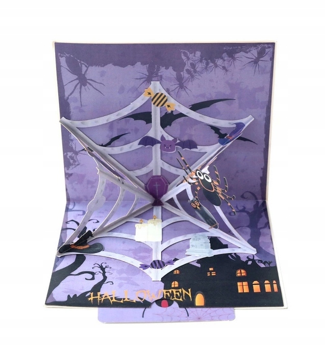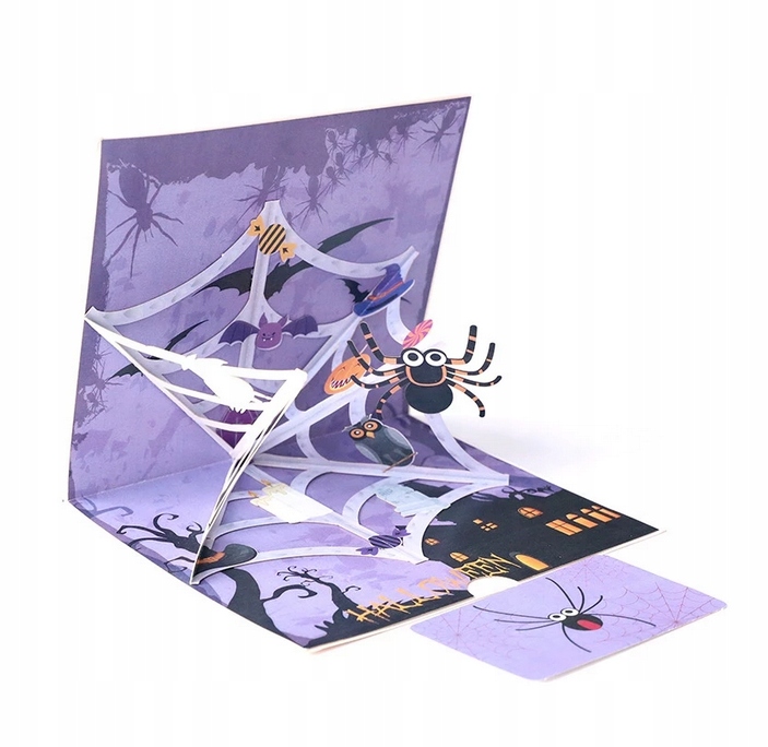 Розмір: 13x15,5 см. Коли дитина відкриває листівку, в її очах з'являється вся тема Хелловіна. Це точно сюрприз для вашої дитини. Спливаюча листівка чудово підходить для Хелловіна, використовуйте її як вітальну листівку або як запрошенняна найкращу вечірку на Хелловін