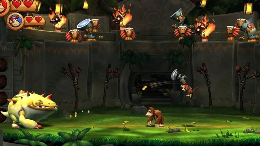Donkey Kong Country Returns — це сучасна частина класичної серії платформерів, запущена в середині 1990-х років на платформі SNES. Виробництвом гри займається команда Retro Studios, яка раніше створила три частини серії Metroid Prime. Тварини, що живуть у джунглях, об'єдналися зі злим Тікісом, який використовує їх для боротьби з головним героєм гри. Однак його попередні дії – крадіжка запасу бананів – принесли більше шкоди, ніж користі. Роздратований до крайності, Донкі Конг без вагань вирушає в погоню за своєю улюбленою закускою і не зупиниться, поки не доб'ється свого. Donkey Kong Country Returns — стандартний платформер, створений у 2.5D. Він містить усі найважливіші елементи попередніх частин серії — динамічний екшн, добре продумані та надзвичайно різноманітні рівні, а також дивовижних супротивників. Увага до деталей, з якою була підготовлена постановка, також призвела до включення знаменитих бочок, які полегшують головному герою пересування по картах. У боротьбі з Тікісом Донкі Конг може розраховувати на допомогу Дідді Конга, свого меншого товариша мавпи. У нього є спеціальний рюкзак у формі реактивного ранця або вогнепальної зброї, яка стріляє горіхами. Його здібності виявляються особливо корисними під час сутичок із супротивниками. У Donkey Kong Country Returns гравці також мають можливість грати в режимі співпраці, в якому один із них бере на себе роль Дідді, підтримуючи Донкі Конга своїми особливими навичками. Горила не залишається в боргу і дозволяє Дідді спокійно сидіти на своїй спині під час найскладніших частин рівнів. На кожному рівні продюсери з Retro Studios приховали десятки секретів і предметів колекціонування, завдяки яким гравець отримує доступ до спеціальних доповнень і бонусів. Крім того, веселощі урізноманітнюють різні види завдань, які запускаються на наступних етапах основного режиму гри.