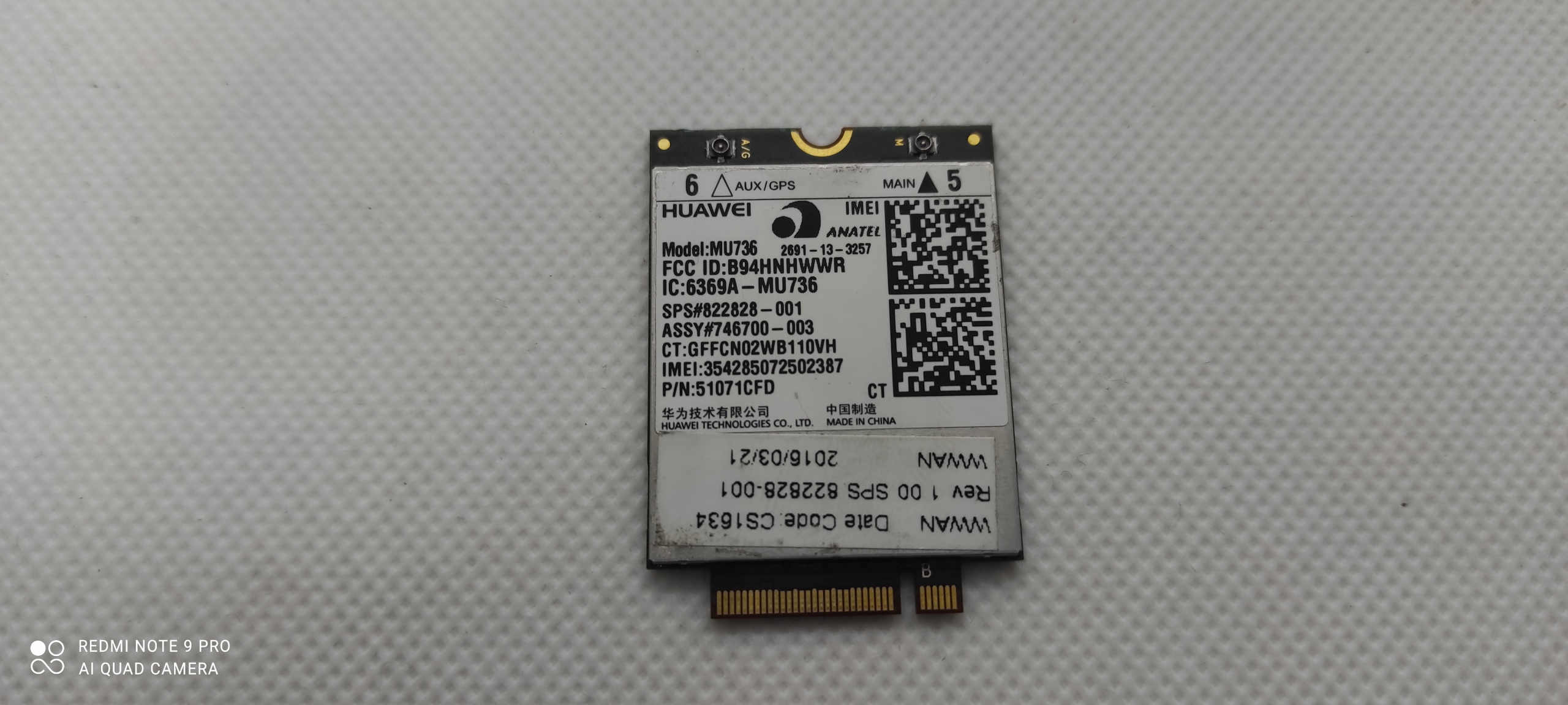 Продам б/в, повністю справний 3G модем Huawei, модель: MU736, SPS: 822828-001 для ноутбуків HP 640, 650, 840, 820. Візуальний стан відповідає фото. Продукт надсилається випадковим чином із доступних одиниць.