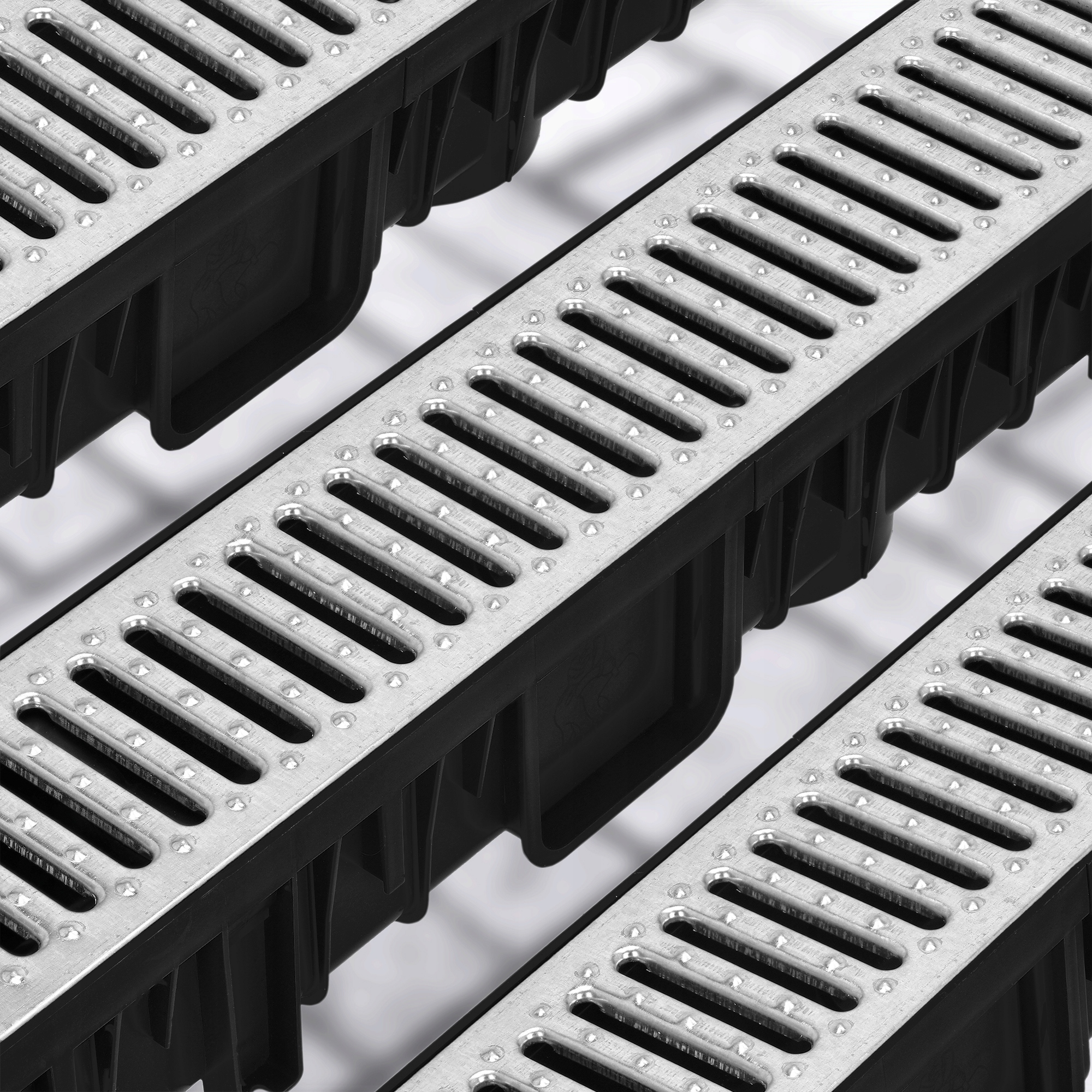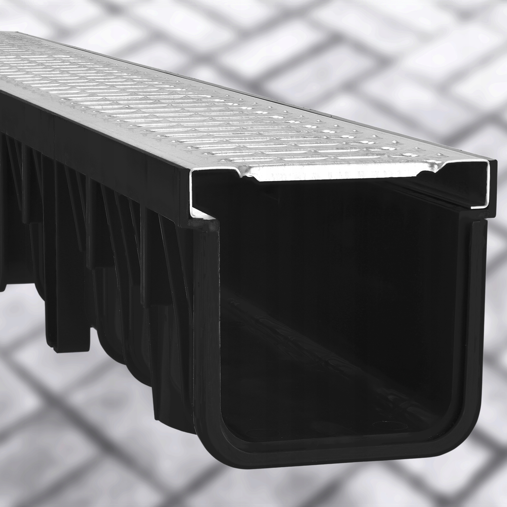 - Канали оснащені численними бічними камерами для полегшення монтажу в бетоні та 58 ребрами, які додатково підвищують довговічність системи.