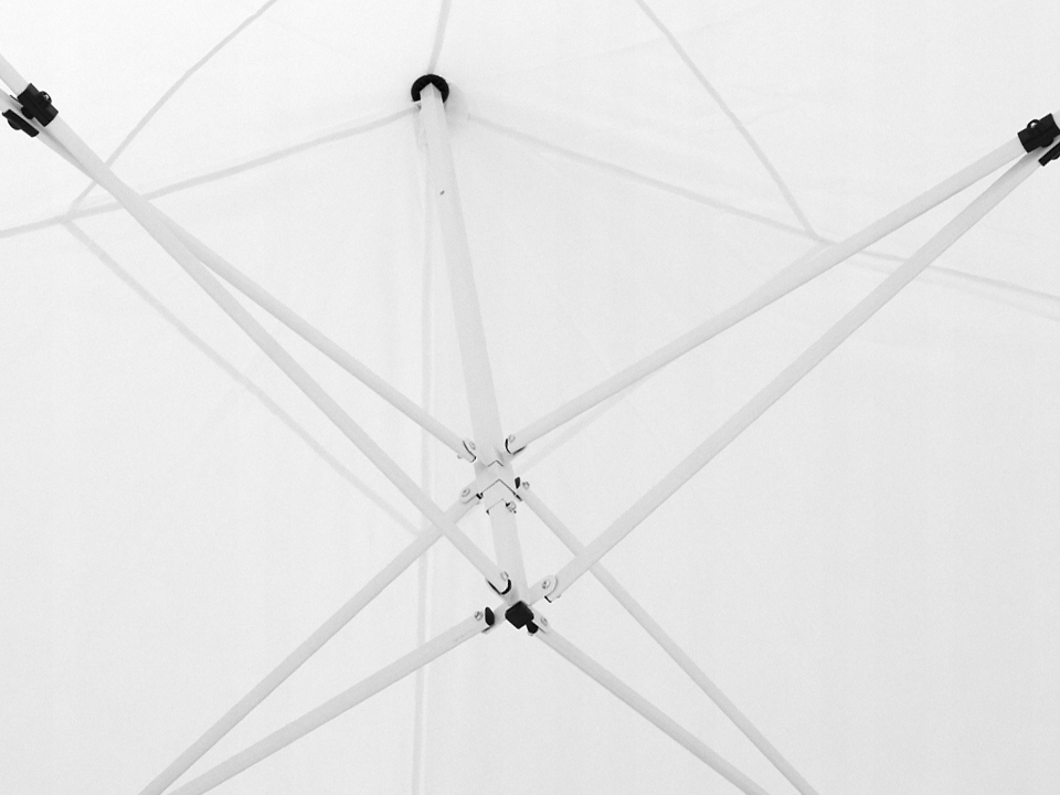Два посилені колони захищають дах, а тверда структура механізму ножиць забезпечує швидку складання та розбирання експрес -намету.