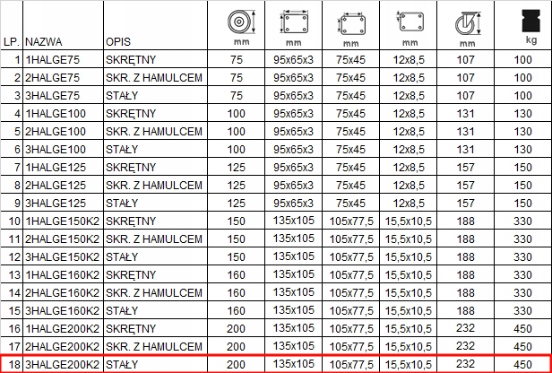 Колісна пара на пластині, код 3HALGE200K2, у таблиці під пунктом 18.