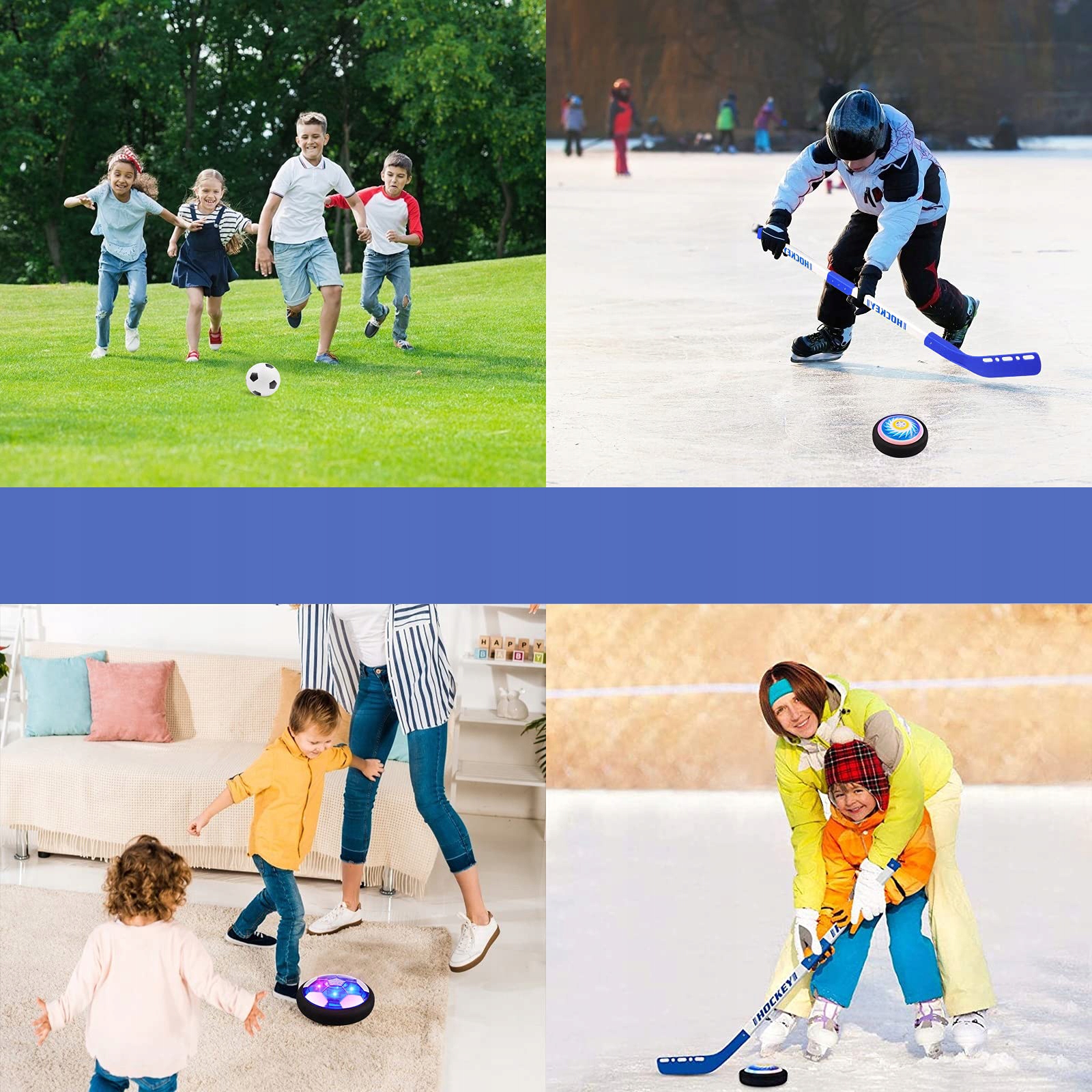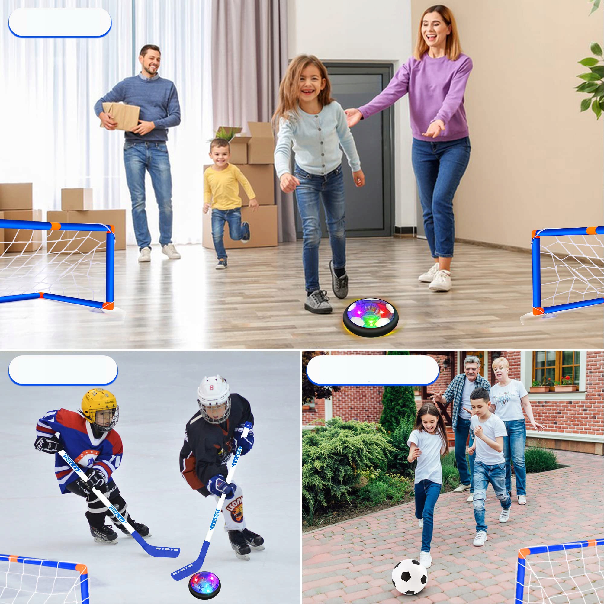 Пневматичні підвіски, плаваючі кульки можуть легко ковзати по плоских підкладках, включаючи основи, підлоги з твердих дерев, підлоги тромбоцитів і клинів з короткими волоссям. Футбольний/хокейний матч може відбуватися вдома в будь -який дощовий або сонячний день! Якщо ви хочете грати у своєму трав’янистій саду, невеликий надувний футбол - це вибір.
