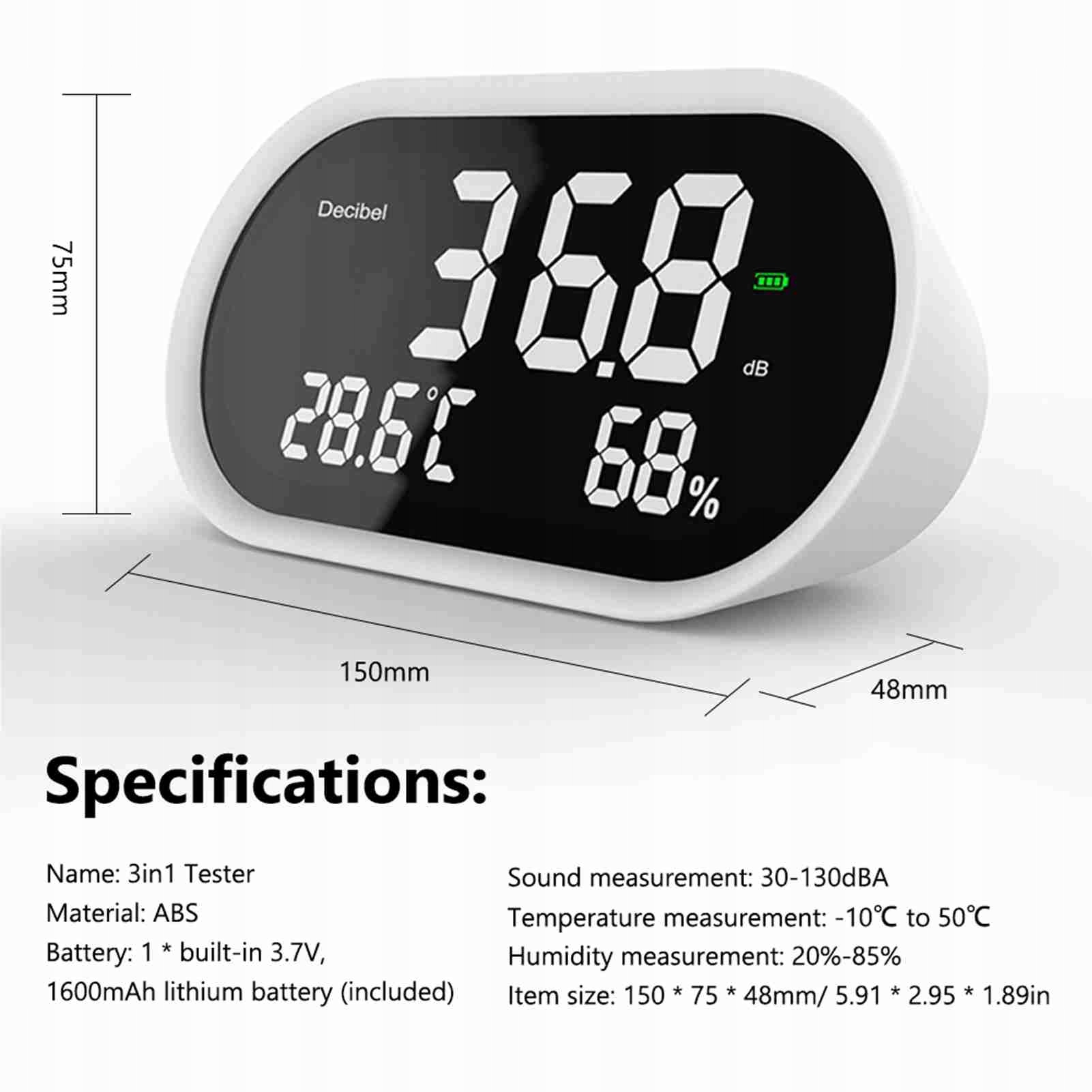 3in1 Комплексний вимірювач шуму шуму навколишнього температури цифрового 09