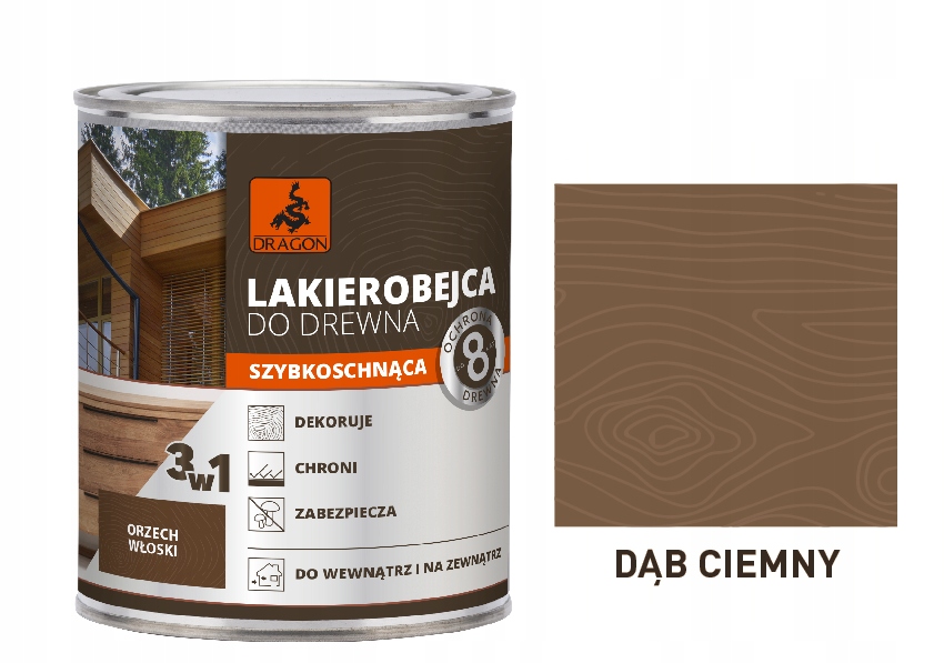 Дракон з високоякісним є захисним продуктом для захисту деревини як у приміщенні, так і зовні. Завдяки вдосконаленій формулі 3 в 1, це ідеально, як продукт, який просочує деревину, дає колір і захищає роками.