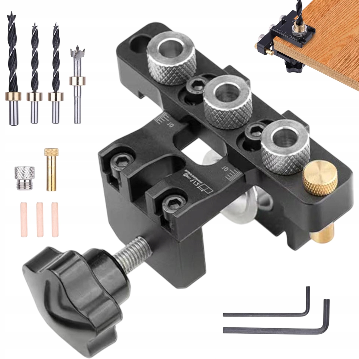 - Шаблон столярної руки для вилків 8/10/15 мм, його можна використовувати для ретельного вимірювання положення штампів, вертикальних марок та ексцентричних отворів. Висота та глибина отвору регулюються. Точне позиціонування. Розроблений для буріння отворів та з'єднувальних панелей, що робить їх ідеальними для обробки меблів панелей.