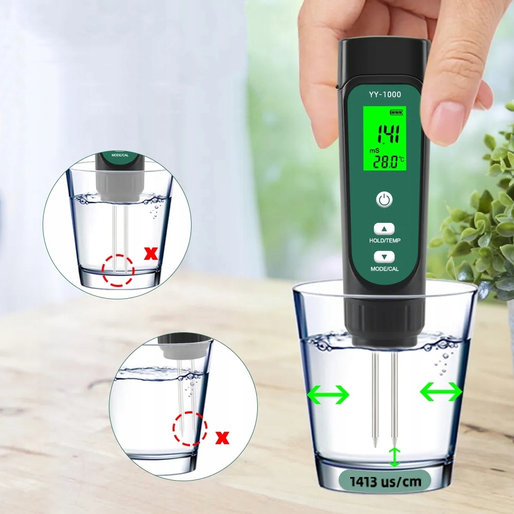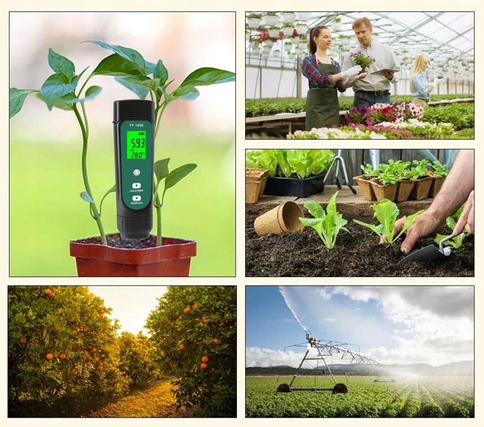, яка може вимірювати провідність ґрунту, вологу ґрунту та температуру ґрунту. Висока точність та точне вимірювання. Великий освітлений РК -дисплей з чіткими читаннями. Попередження з низьким рівнем заряду акумулятора, змінним зондом, простим у використанні та простим у перенесенні. Широкий асортимент застосувань, що використовуються в теплиці, рису, овочах, саду, квітів, ґрунтових випробувань тощо