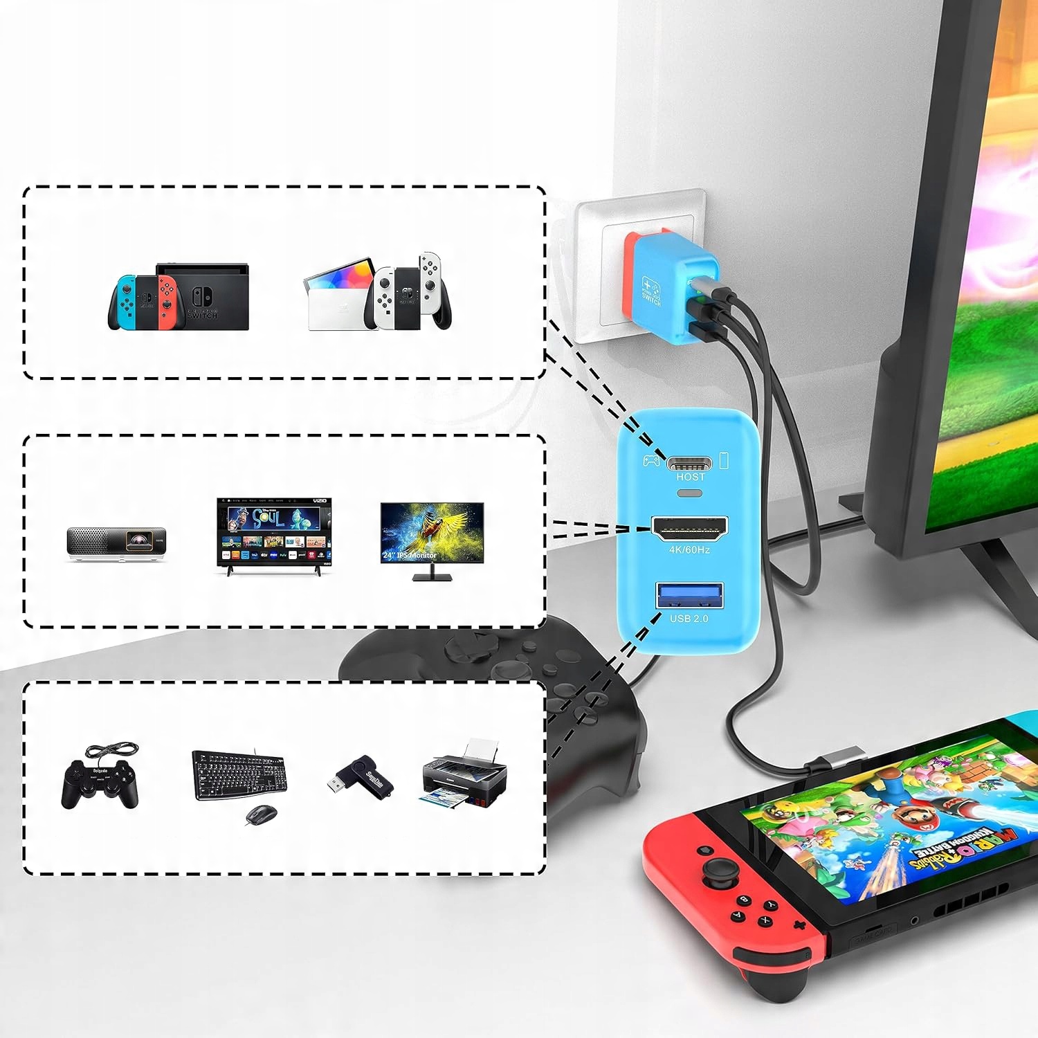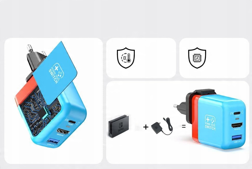4 Підключення максимум трьох пристроїв. Цей зарядний пристрій Dock Dock є ідеальною заміною для оригінальної док -док -станції перемикача та джерело живлення, заощаджуючи гроші та місце.