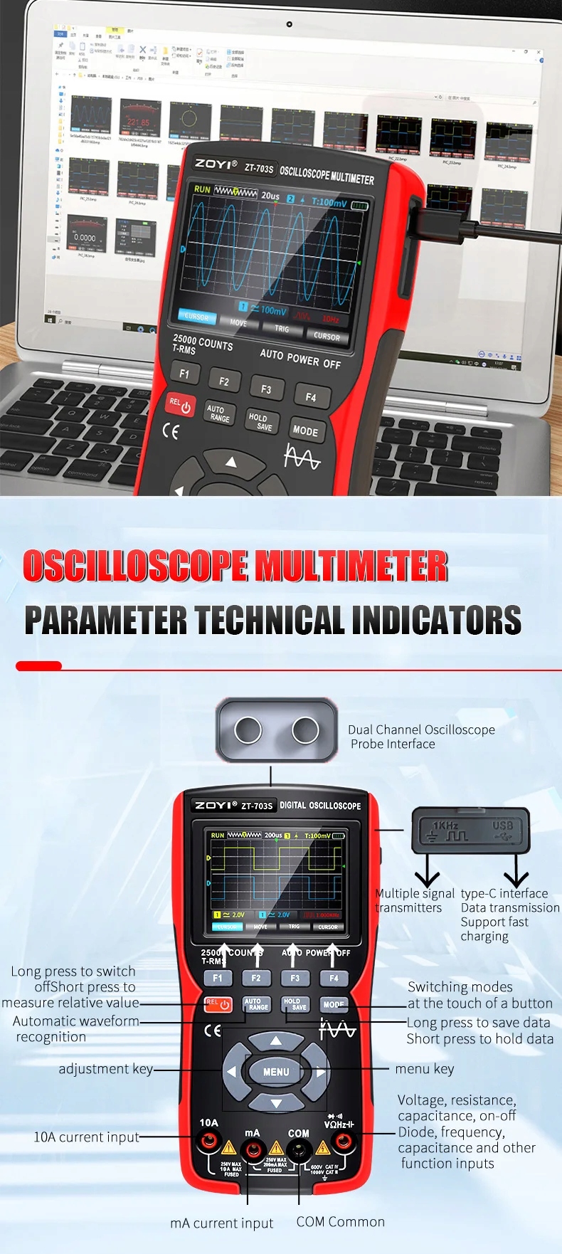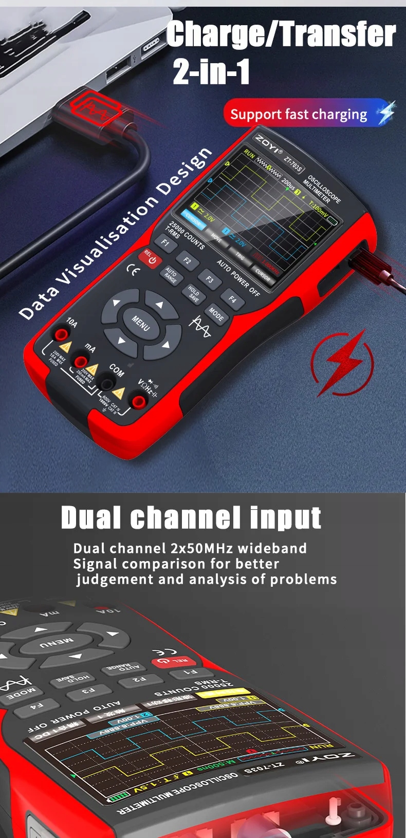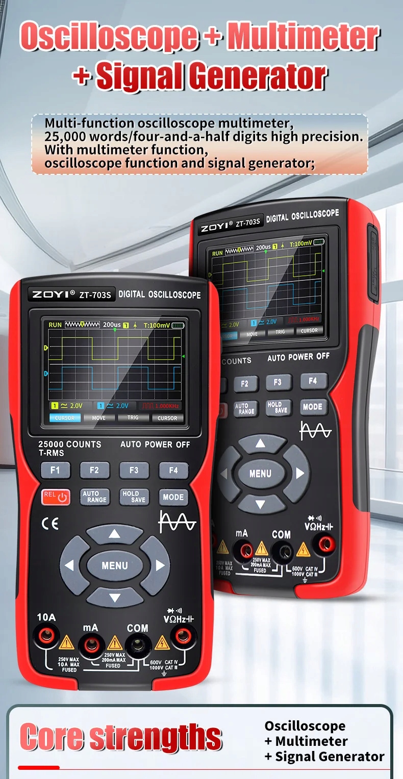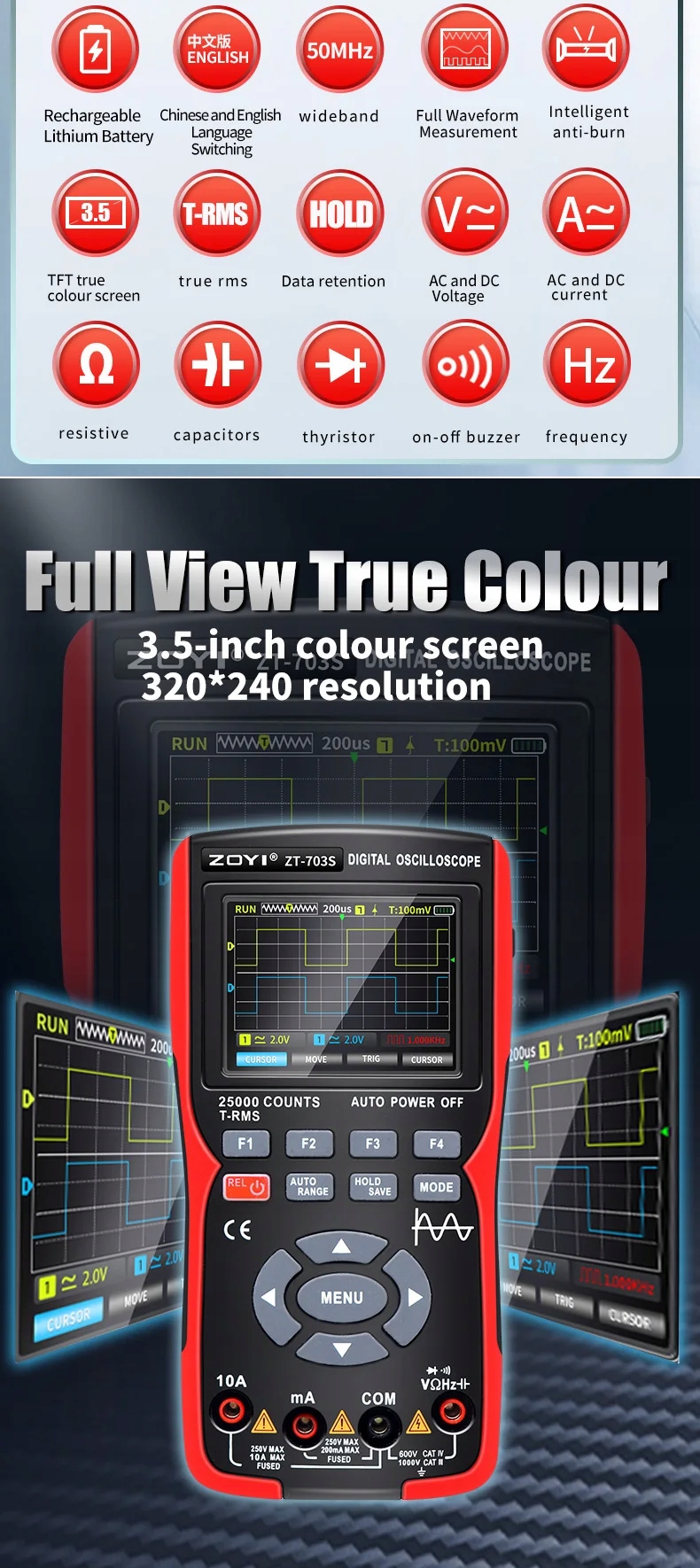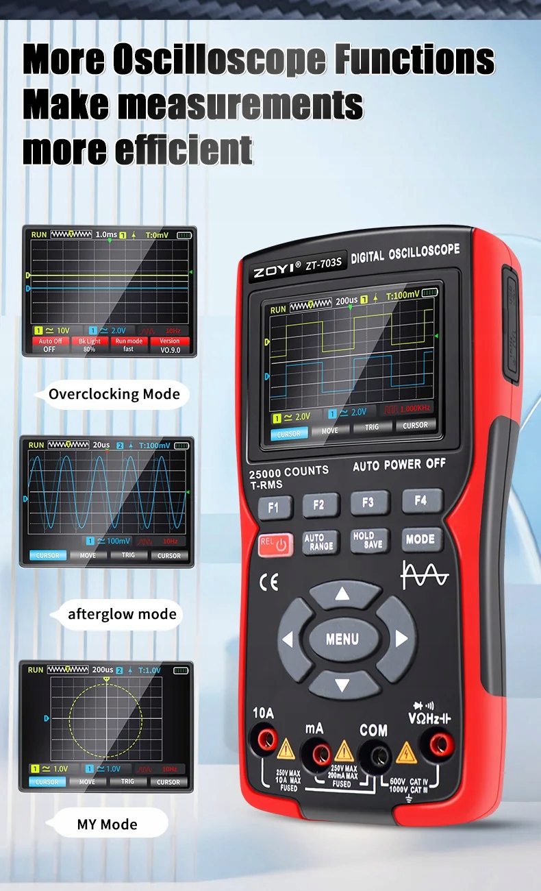 3IN1 ZT703S Цифровий Осцилоскоп мультиметр 50 МГц пропускна здатність тестер Rator Tester