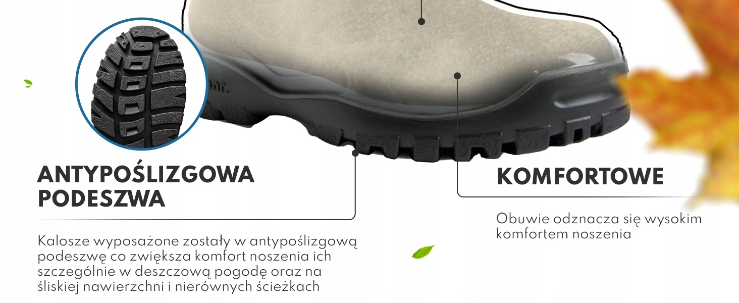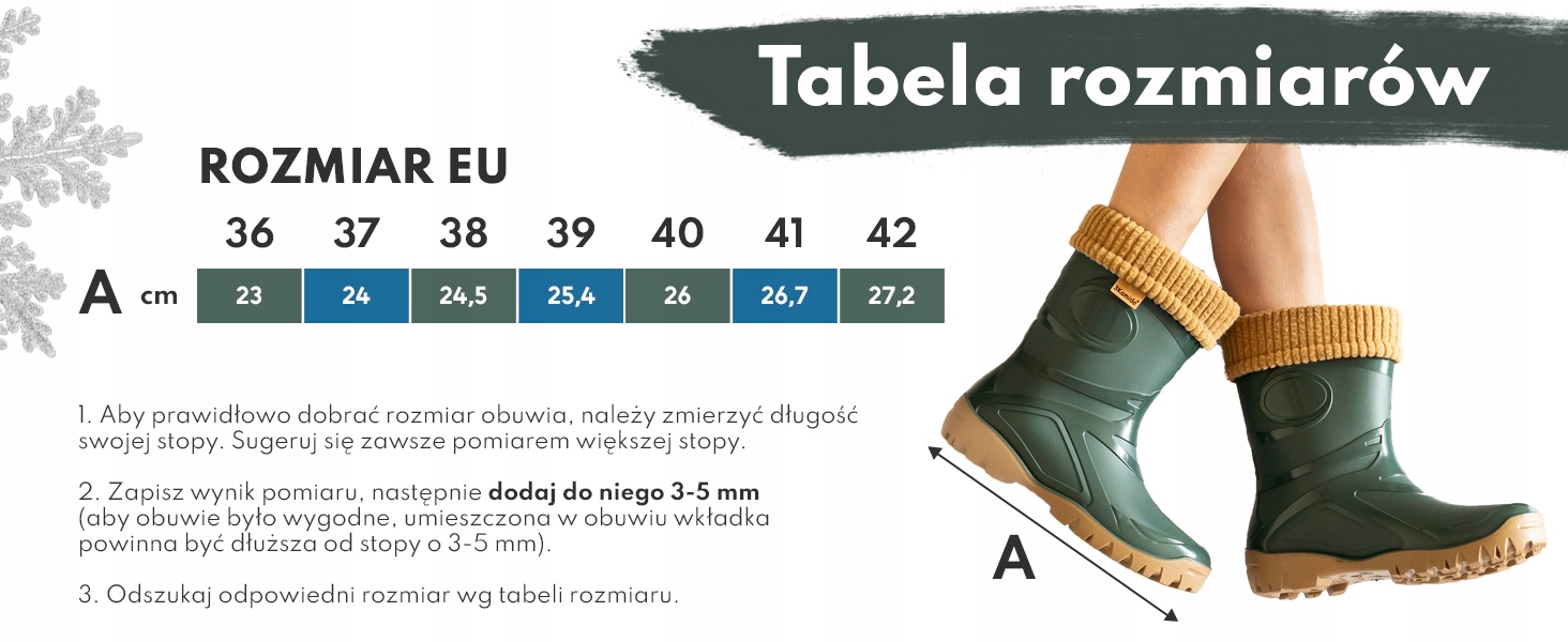 4. Wellies оснащені підошвою, що не має слизу, що збільшує комфорт носити їх, особливо в дощову погоду, на слизьких поверхнях та нерівних шляхах. Взуття також є водонепроникним, що забезпечує сушіння. Вони працюватимуть у саду під час вимогливих робіт, під час прогулянок, лісових експедицій та інших заходів на свіжому повітрі в холодні дні.