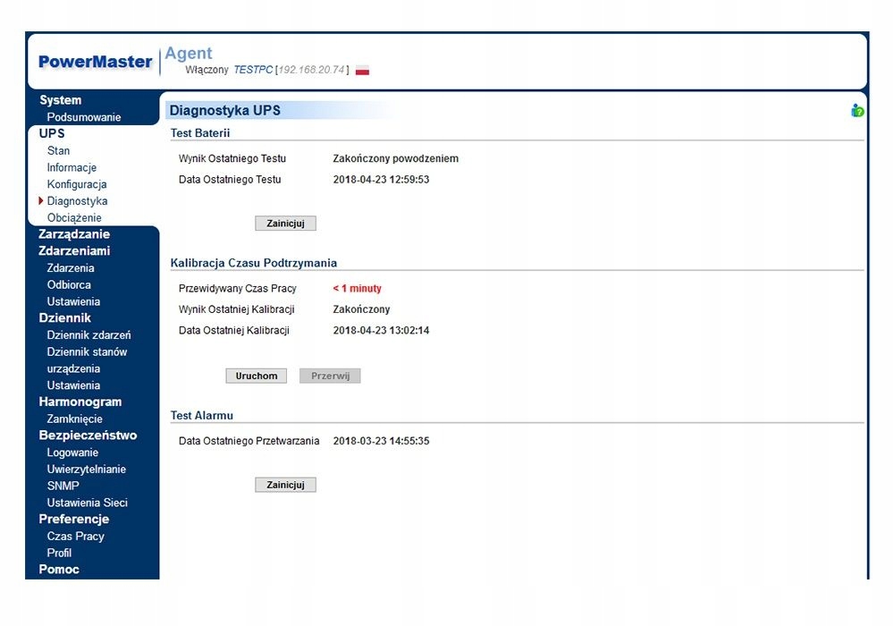 - Керування ДБЖ – через порт USB за допомогою програмного забезпечення PowerMaster польською мовою,