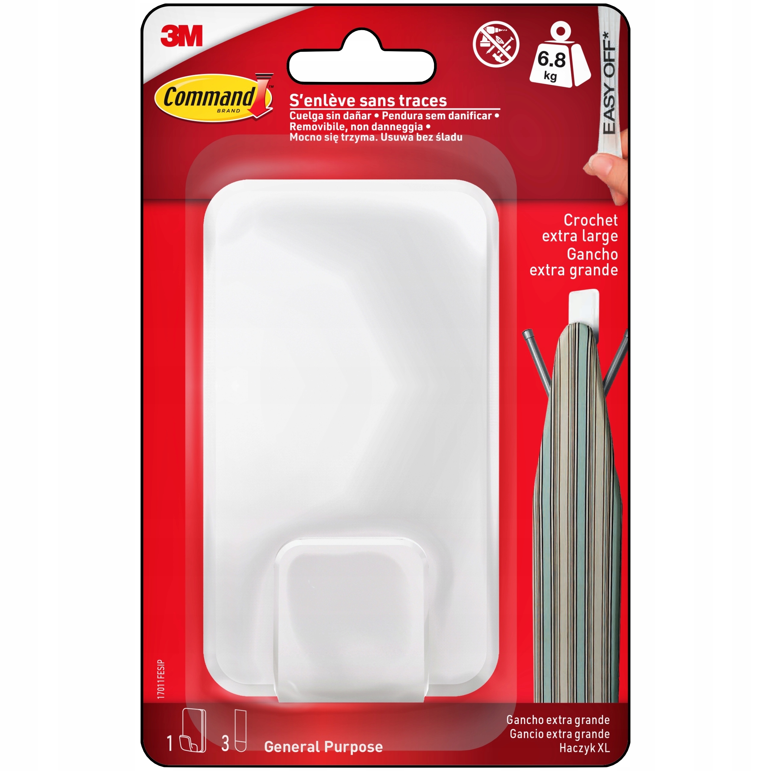 - ЗМІСТ – 1 дуже великий (XL) білий гачок Command™ і 3 великі гачки Command™ Velcro; 1 гачок витримує до 6,8 кг