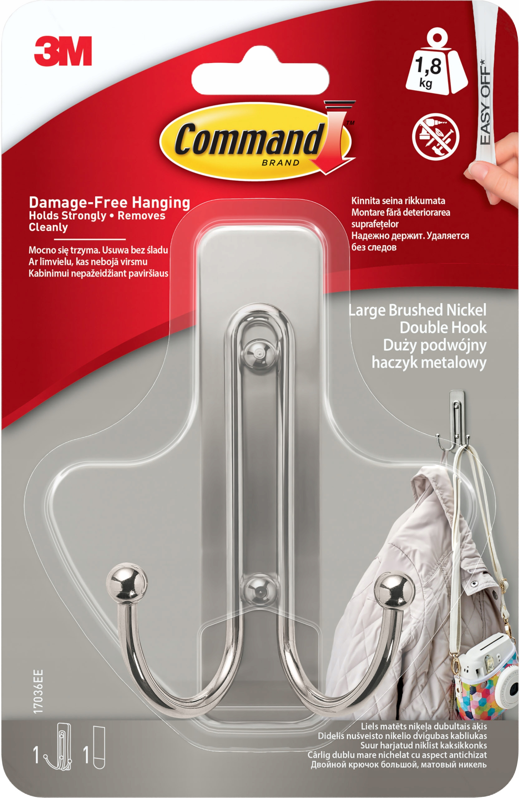 3M COMMAND LARGE HOOK DOUBLE HOOK METAL HANDLE є ідеальним рішенням для людей, які хочуть організувати свій простір естетично та функціонально. Завдяки використаній технології кріплення можна вішати різні предмети, не боячись пошкодити поверхню. Ось деякі основні характеристики цього продукту: