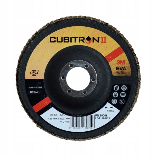 пластинчастий диск Cubitron II та додавання охолодження. Набережна: кубітрон II. Форма: нахил. Розмір: 125x22 Застосування: шліфування, обробка, очищення зварних швів, набіги, поетапність, надання. Виробник: 3м
