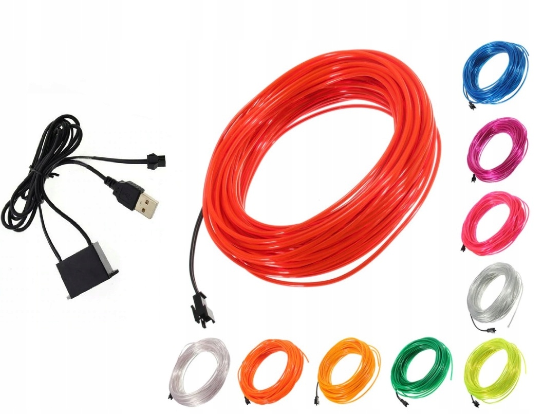 3M EL WIRE ВОЛОКОННО-ОПТИЧНА СВІТЛОДІОДНА СТРІЧКА ОСВІТЛЕННЯ КАБІНИ НАВКОЛИШНІ КОЛЬОРИ USB