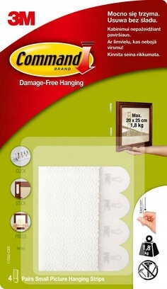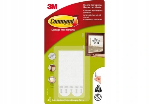 Ми пропонуємо 3M командного липучки для повіслення середніх зображень , які є ідеальним рішенням для оздоблення внутрішніх справ. Пакет містить 4 набори (8 липучок), які забезпечують відмінну стабільність при повісі різних елементів.