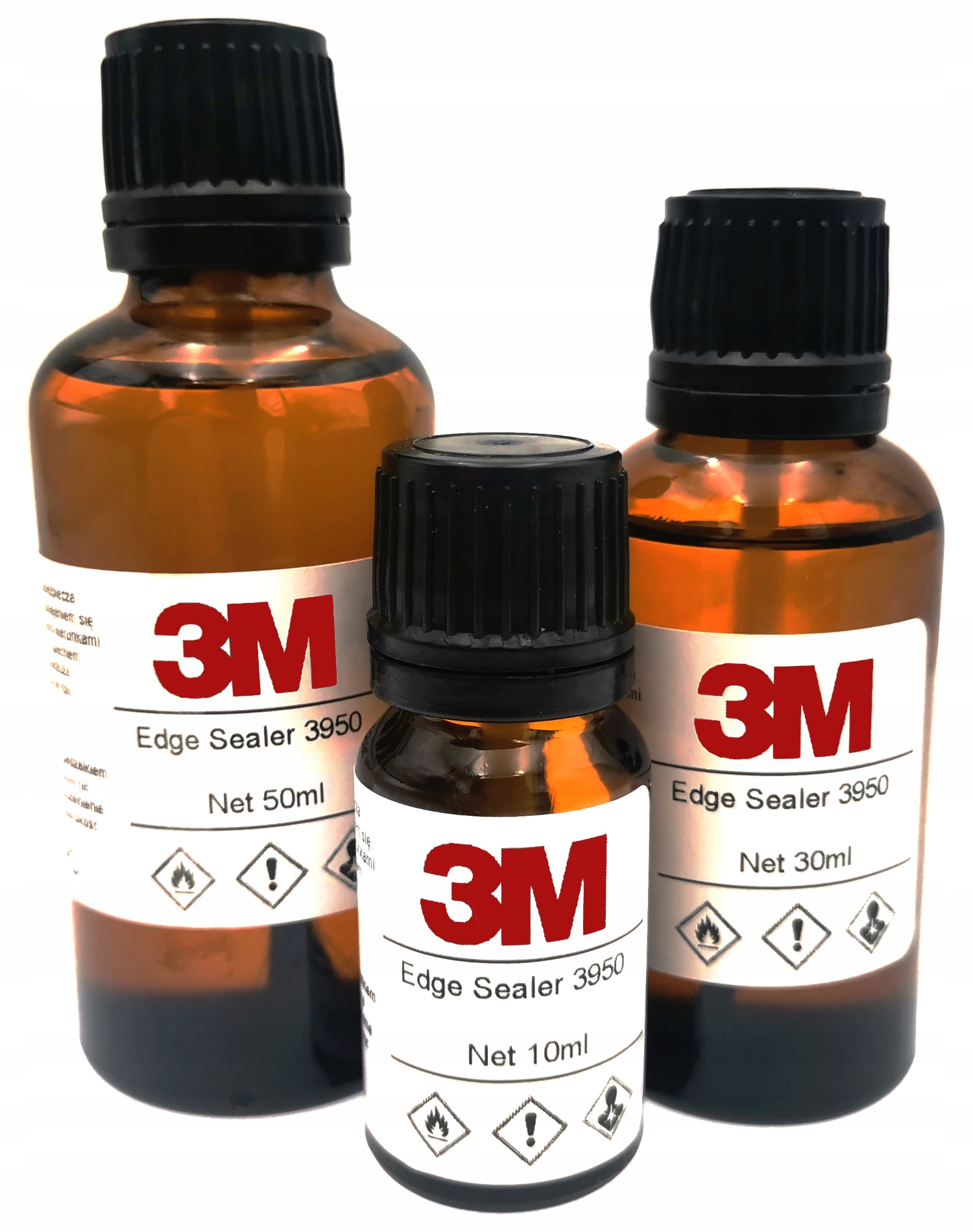 3M EDGE SEALERфасується з більших контейнерів. Пляшки скляні, герметичні. Вони мають печатку, що підтверджує оригінальне закриття. На флаконі є пензлик-аплікатор.