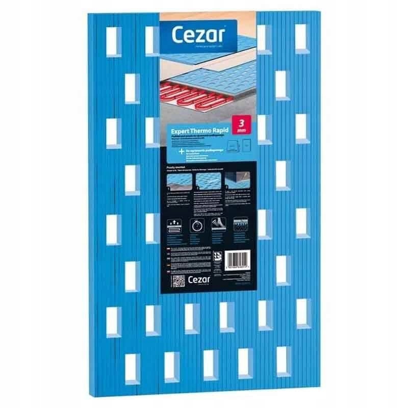 Підлогова підкладка Expert Thermo Rapid CEZAR виготовлена з екструдованого полістиролу XPS, призначена для всіх типів плаваючої підлоги з підігрівом або охолодженням. Утеплювач для підлоги випускається у вигляді прямокутної плити. Його ергономічна форма забезпечує швидку систему складання та просту обробку. У плиті є прямокутні отвори, які забезпечують ідеальний розподіл теплого або холодного повітря від підлогової системи по всій поверхні підлоги. Утеплювач для підлоги буває лише однієї товщини. Підложка для підлоги є єдиним продуктом такого типу на європейському ринку, що дає їй назву інноваційного утеплювача для підлоги.