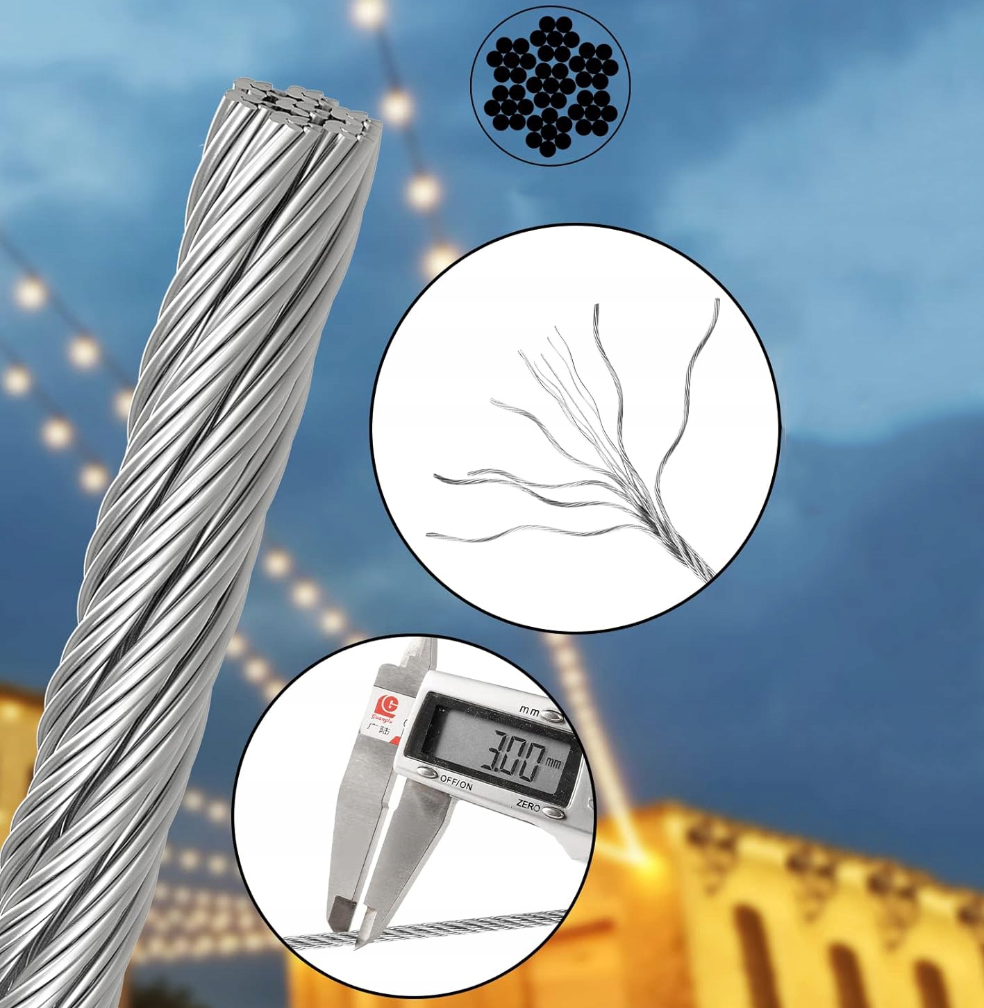 ❇️❇️【Універсальний дротяний трос 3 мм】Набір сталевого троса з покриттям 3 мм може виконувати широку роботу ряд важких завдань, включаючи дріт для в'юнких рослин, підвісний кабель для зовнішнього освітлення для створення романтичної вечірки, також можна використовувати для комплектів балюстради внутрішнього дворика, зовнішньої кабельної балюстради; Достатня кількість 3-міліметрових натягувачів дроту в комплекті забезпечує більшу гнучкість використання дроту для підвішування картин, кабелю для кріплення дзеркала, кабелю для огорожі, дроту шпальти, дроту контактної мережі тощо.