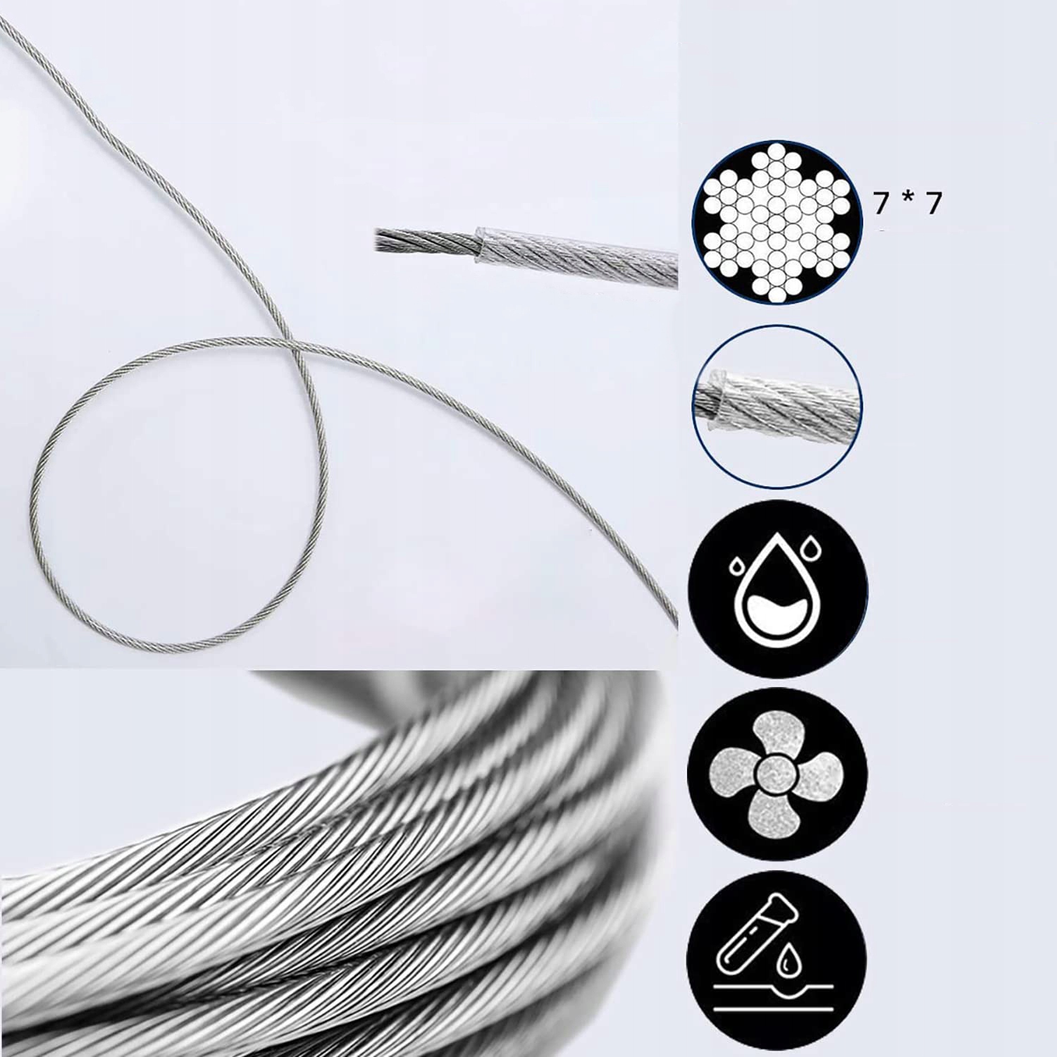 🎀🎀【3 мм дротовий трос】3 мм сталевий трос із Нержавіюча сталь 304. Дріт покритий ПВХ, що робить його менш абразивним, стійким до атмосферних впливів, водонепроникним, стійким до іржі та корозії, а також має високу міцність. Тросовий кабель 304 можна легко розрізати на будь-яку довжину.