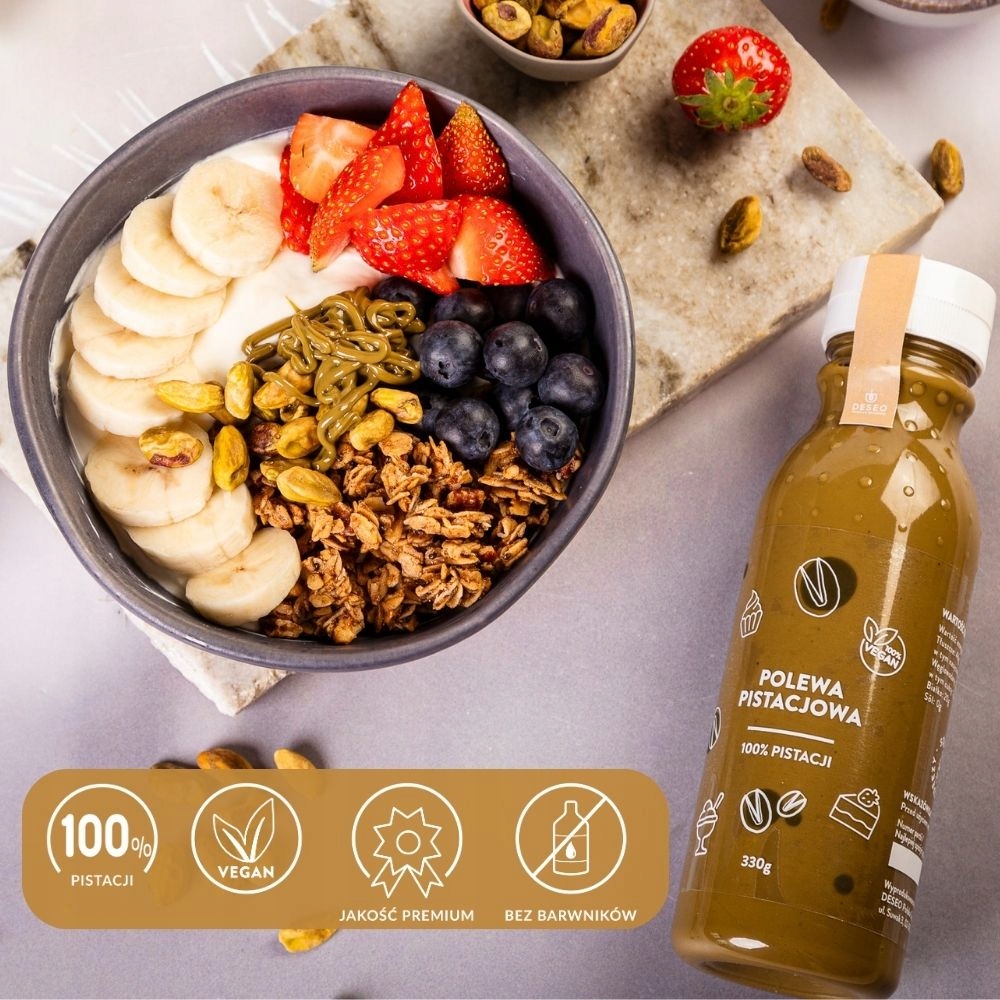 Це не простий топінг - це 100% смажені фісташки без будь -яких доповнень. Він створюється в нашій студії з найвищої якості фісташок, які ми смажимо і шліфуємо, щоб отримати гладку шовковисту консистенцію.