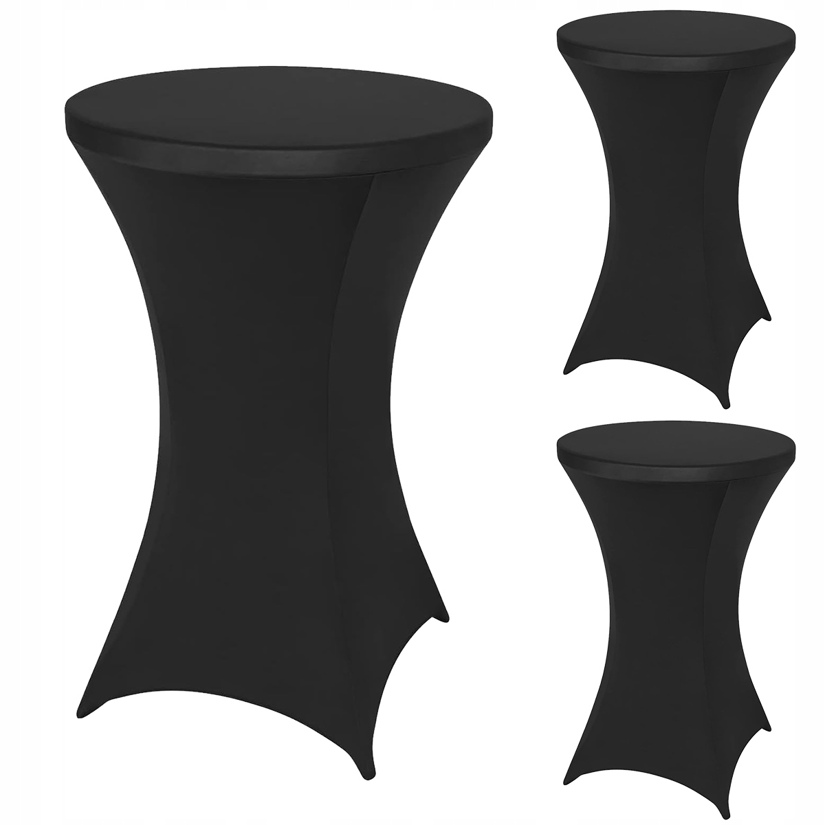 3-пакетну скатертину спандексу в чорному коктейлі з квадратними рогами, виготовленим з високоякісної гнучкої тканини спандексу (95% поліестеру та 5% спандексу), м'якої та довговічної, достатньої гнучкості може бути розширена до потрібного розміру. Підходить для круглих столів діаметром 80 см і висотою 110 см. Завдяки 4 кишеням на нозі, виготовленому з міцного, гнучкого матеріалу, його можна легко носити. Вони перетворюють звичайні пластикові/металеві столи в дуже елегантні вигляді меблі.