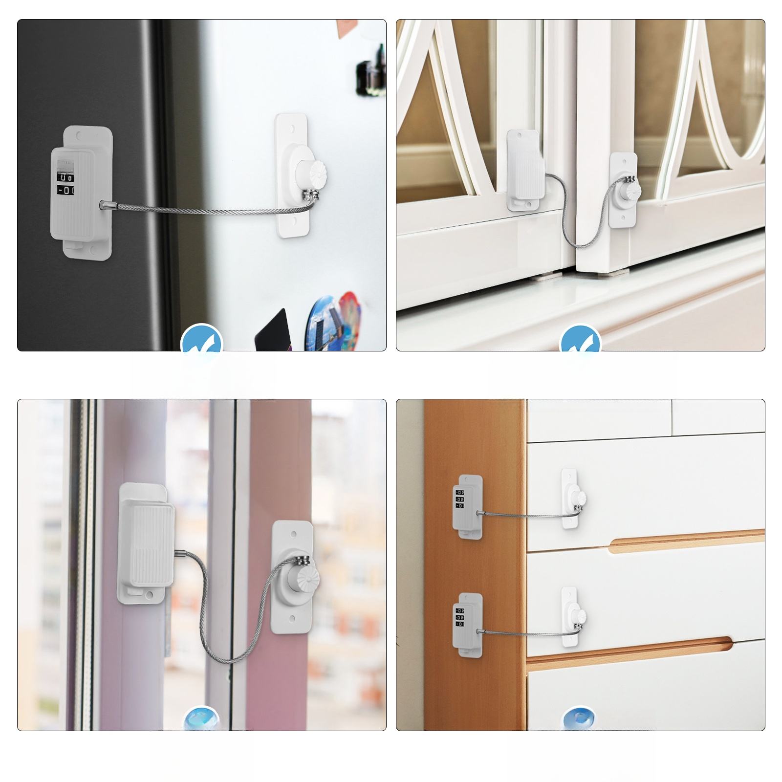 ✅Ці кодові замки є універсальними та практичними для домашнього використання. Вони можуть ефективно запобігти випадковому відкриттю вікон, забезпечуючи безпеку людей, а також ідеально підходять для холодильників, шаф тощо. Вони використовують самоклеючі підкладки для легкого встановлення без пошкоджень, не залишаючи слідів на поверхнях.